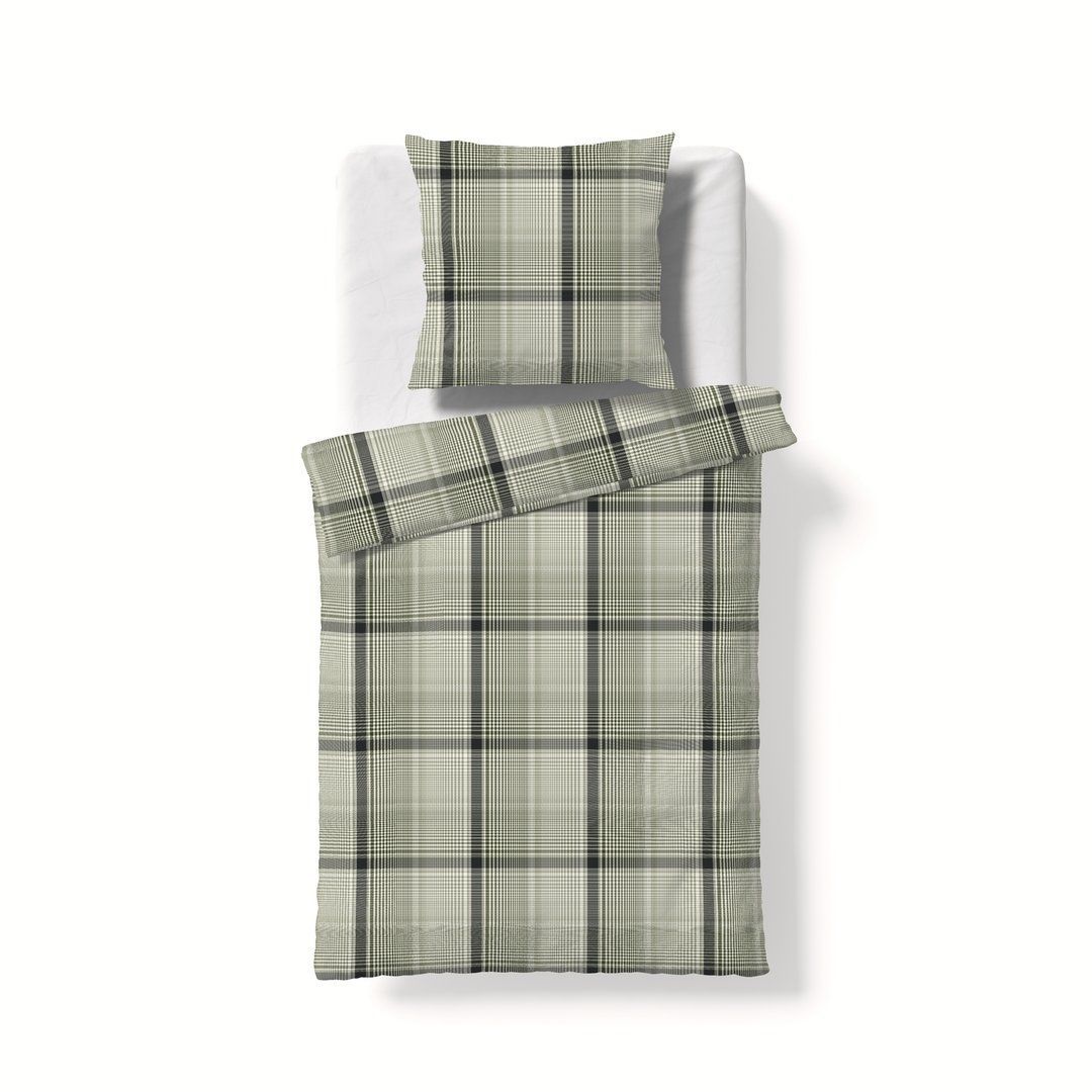 Fleuresse Lech Edelflanell Bettwäsche 200x220 Karo grün silbergrau 604385-15