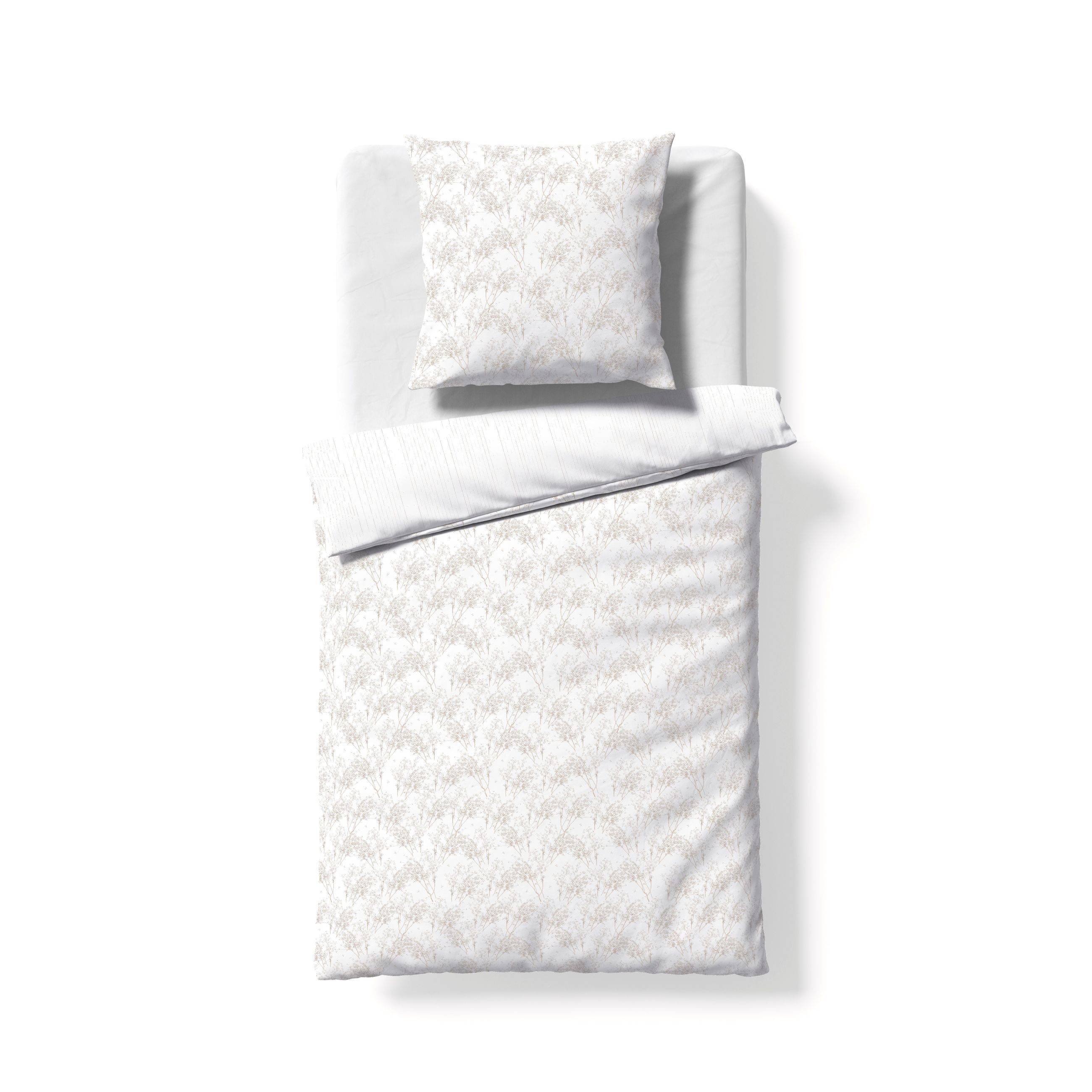 Fleuresse Mako-Satin Bettwäsche 155x220 Gräser Streifen Wende weiß sand 114529-17
