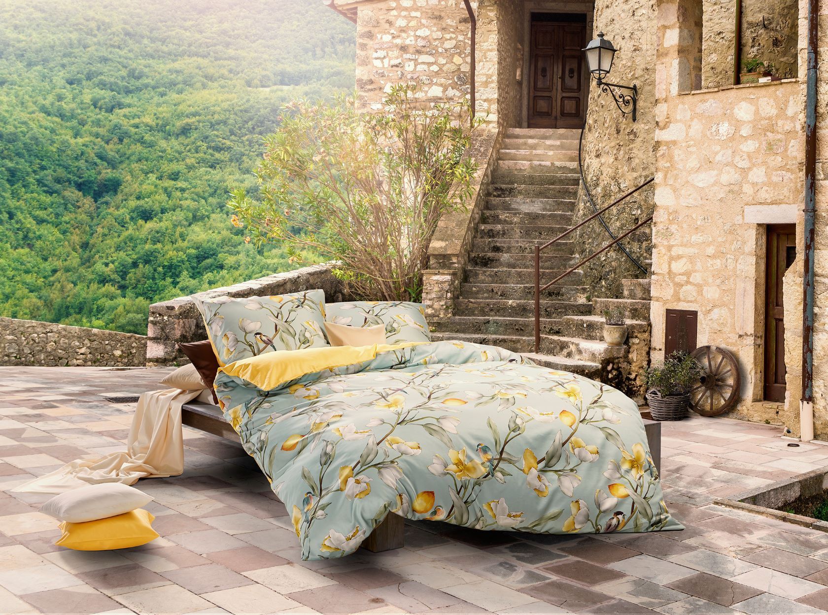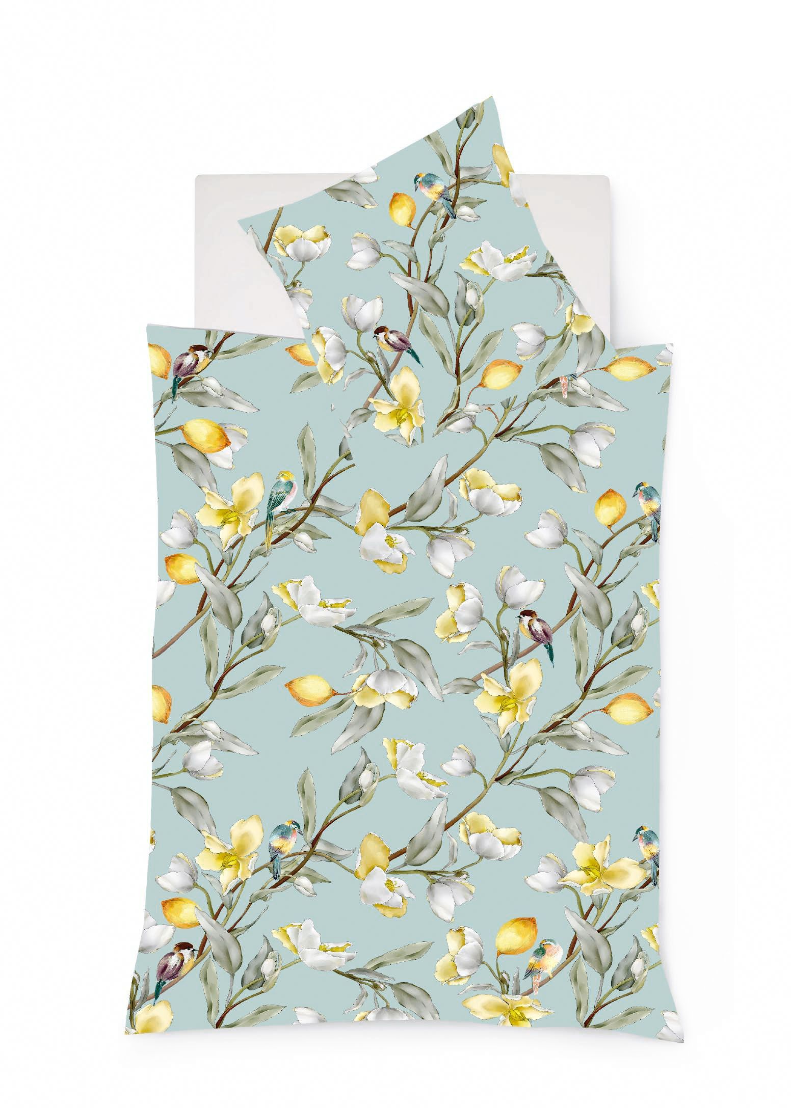 Fleuresse Fleuresse Mako-Satin Bettwäsche 155x220 Zitronen Blüten Vögel smaragd 114345-05