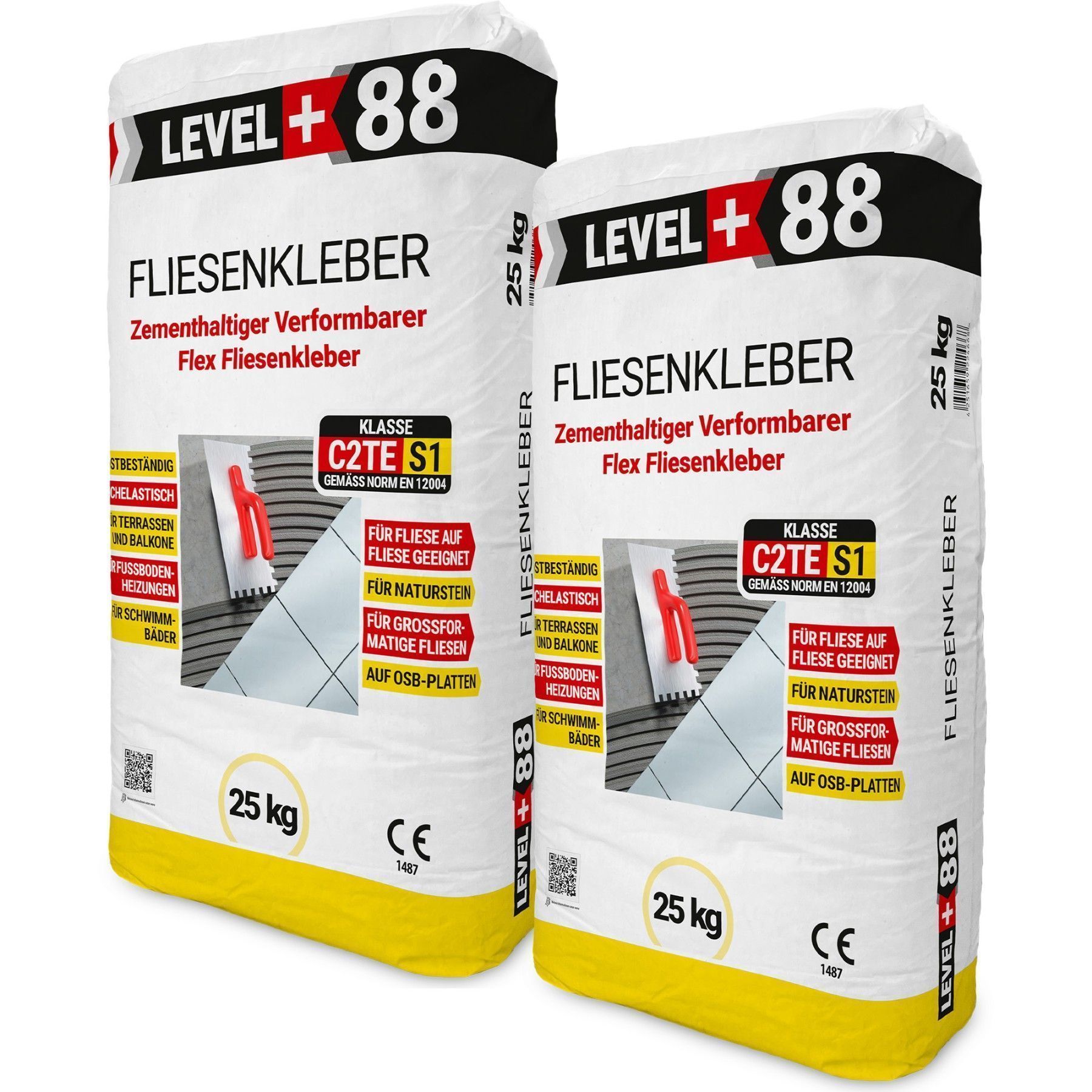 Flexkleber Fliesenkleber 50kg Flexmörtel S1 Innen Außen Naturstein Level Plus 88