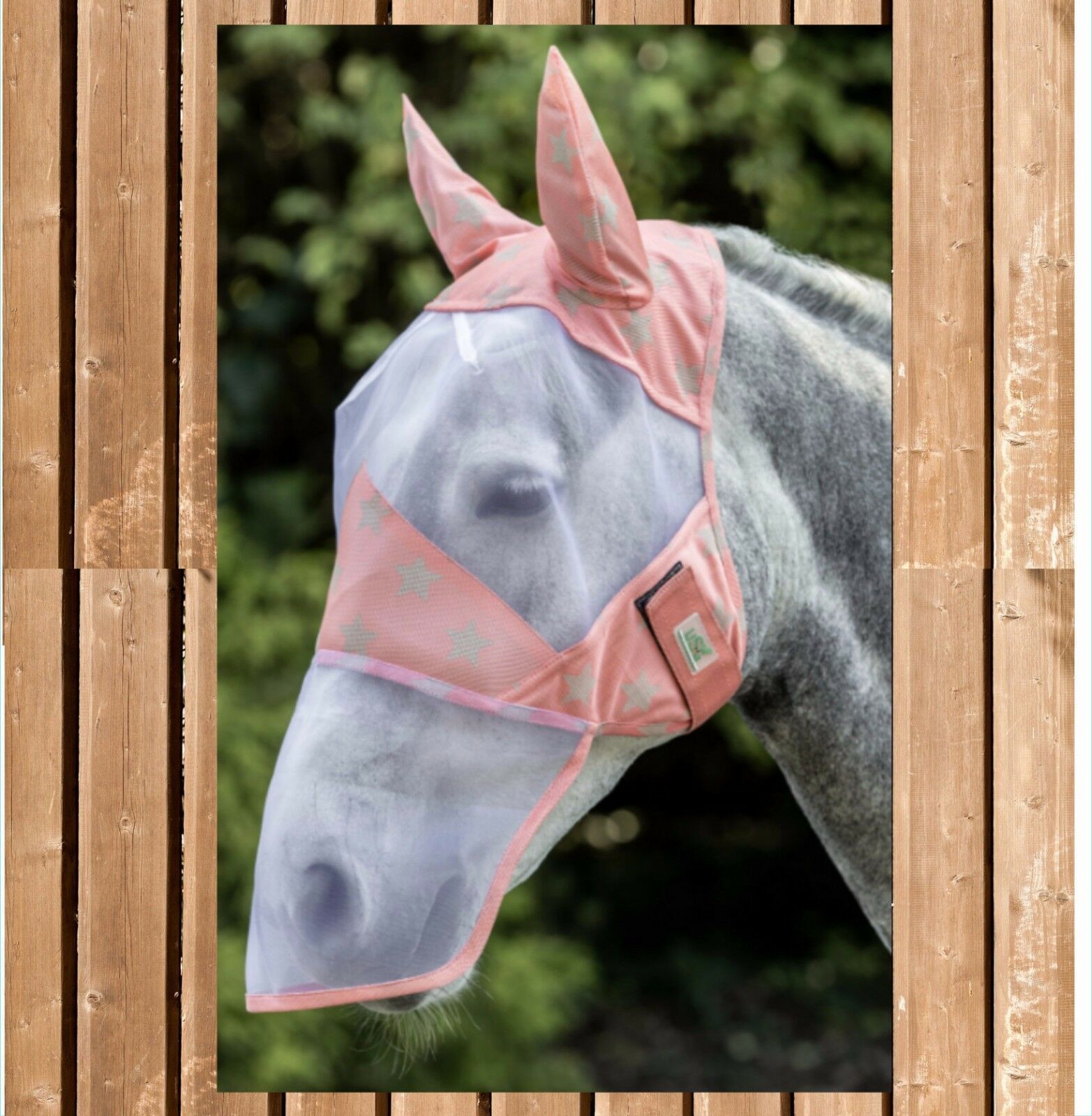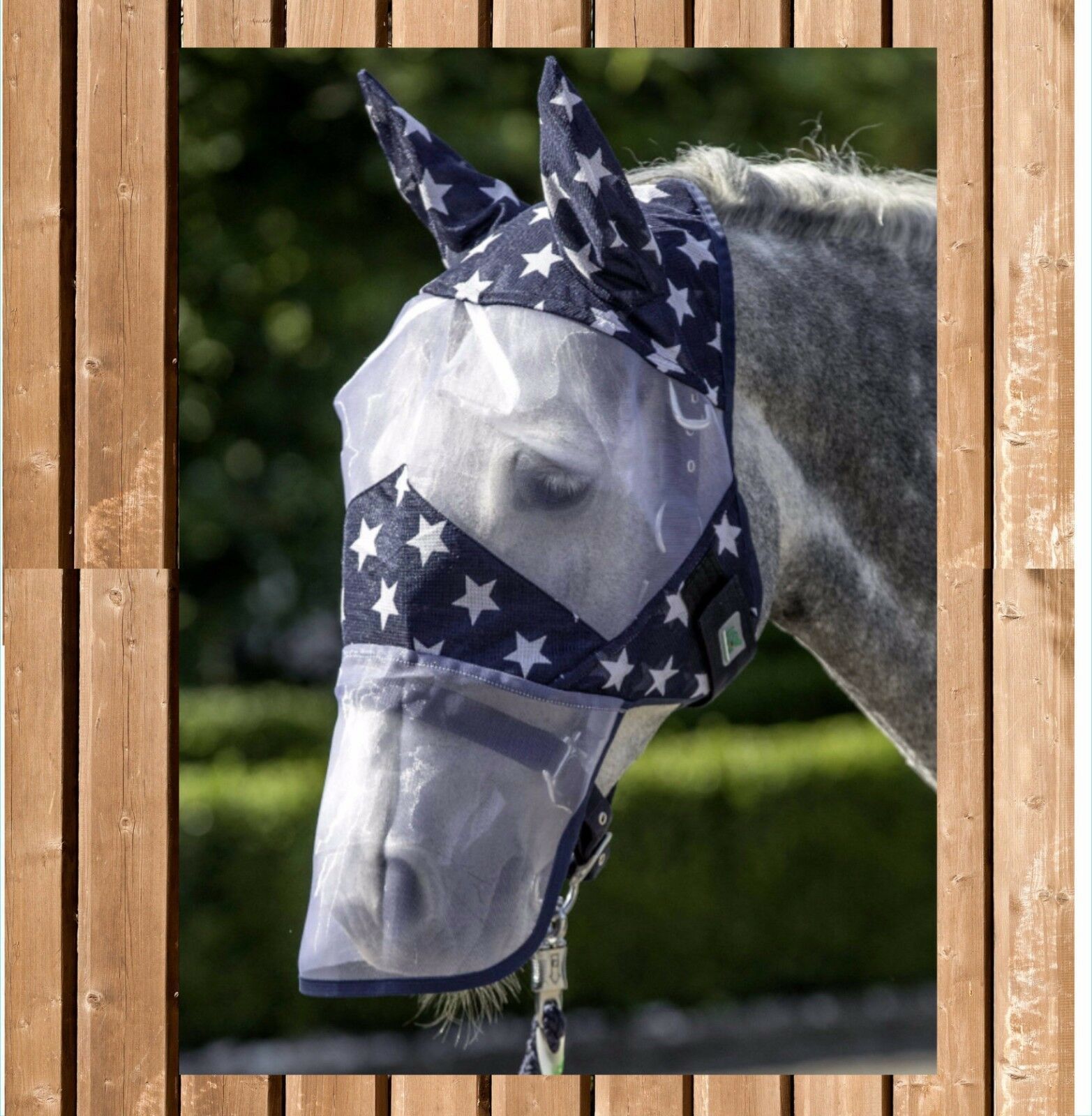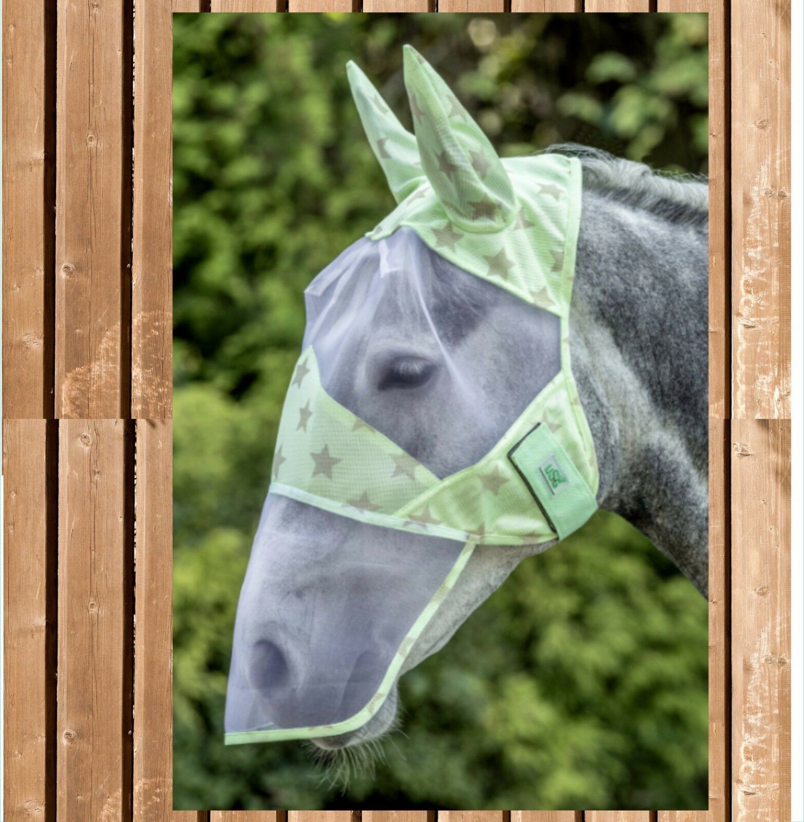 Fliegenmaske, zweifarbig mit Sternenmotiv Fliegenmaske mit Ohren- und Nüsternschutz Stars Fliegenmaske Stars mit Ohren- und Nasenschutz, 100% Polyester. Besonders feinmaschiges Polyestergewebe, mit stylischem Sternen Motiv. Fliegenmaske Stars leichtes engmaschiges Material für optimalen Schutz vor l