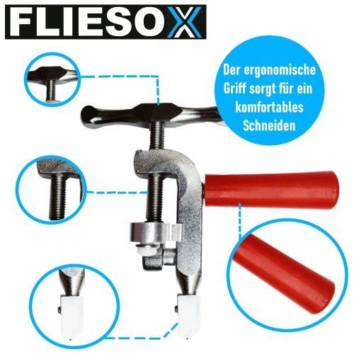 Fliesox 2in1 Fliesenschneider Glasschneider Profi Handfliesenschneider Keramik