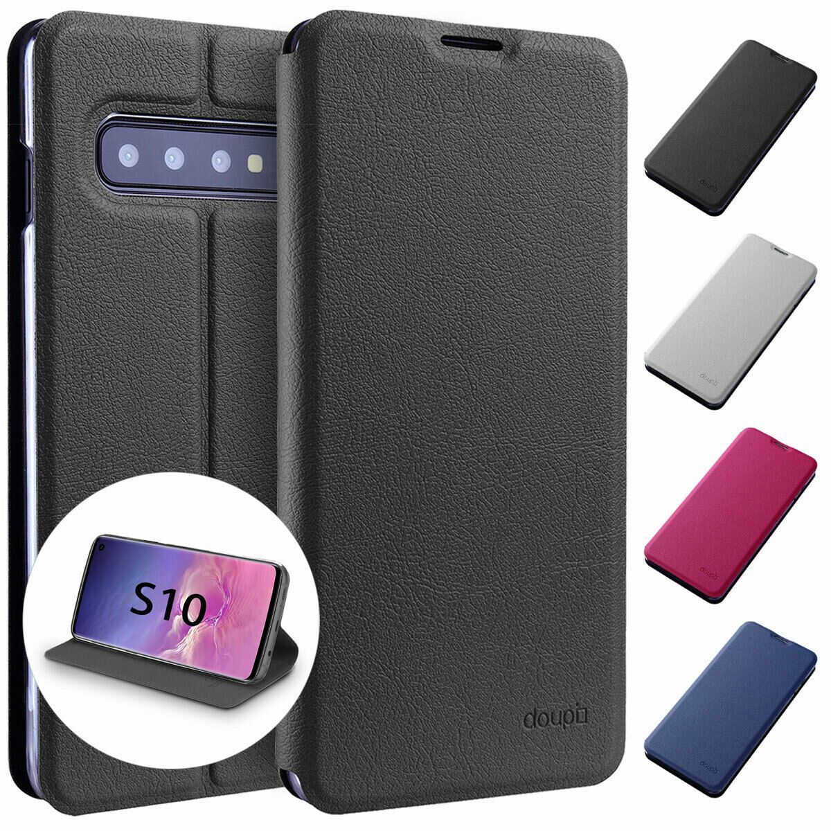 Sonderangebot Neu eingetroffen ÜBER UNS close Beschreibung Weitere Details doupi FlipCase für Samsung Galaxy S10, Deluxe Schutzhülle mit Magnetischem Verschluss Klappbar Book Style Aufstellbar Ständer • [Kabelloses Laden Unterstützt] Simple & Stylish, ultradünn mit integriertem Magnet-Versc