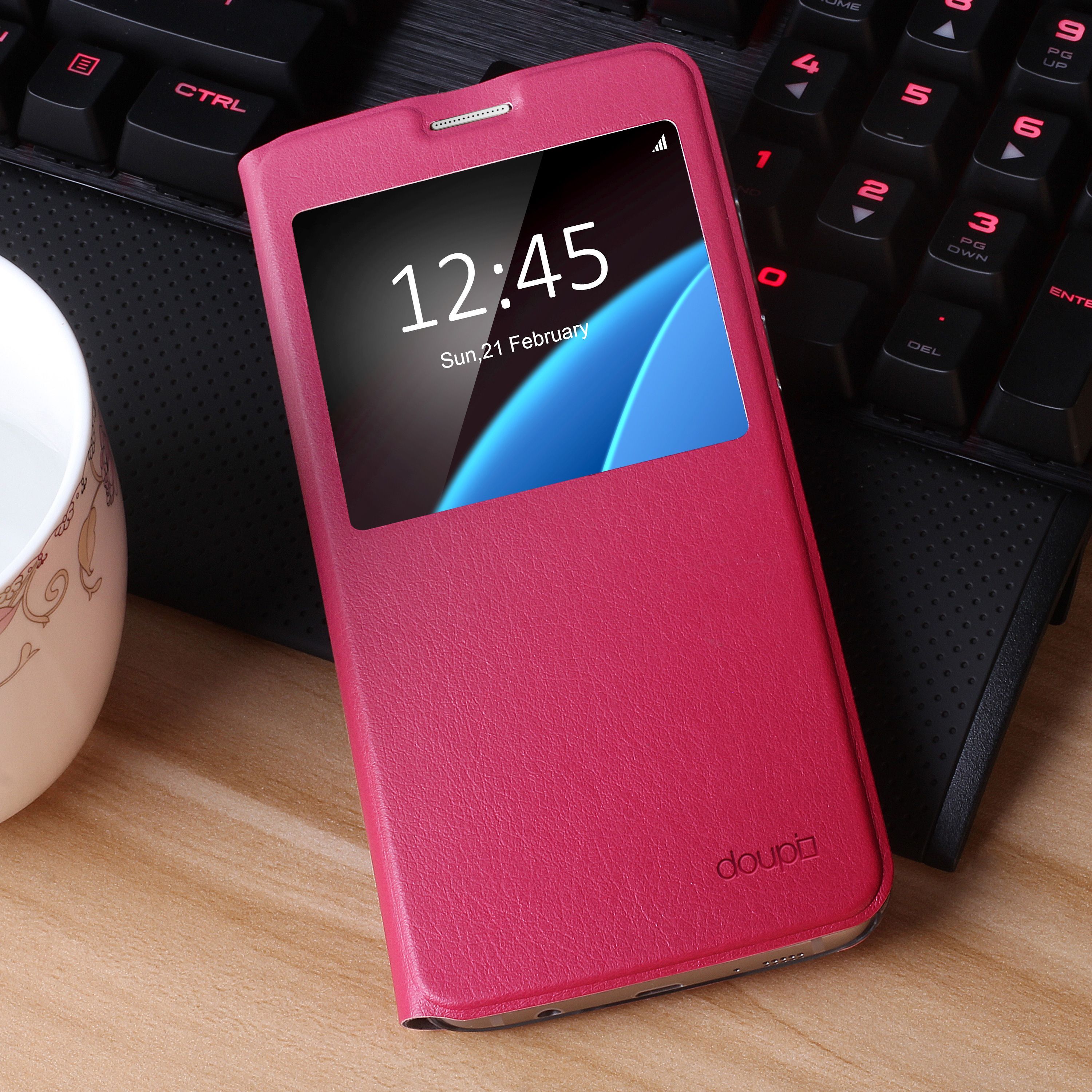 Flip Case Samsung S7 Edge Magnet Fenster Cover Aufstellbar Ständer Hülle Etui