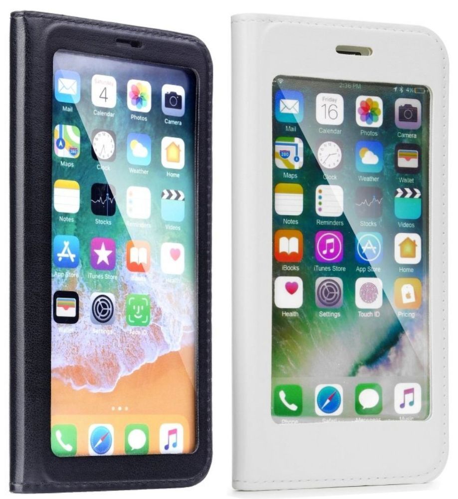 Flip Cover Tasche Handyhülle Schutzhülle Sichtfenster Case iPhone Samsung Huawei