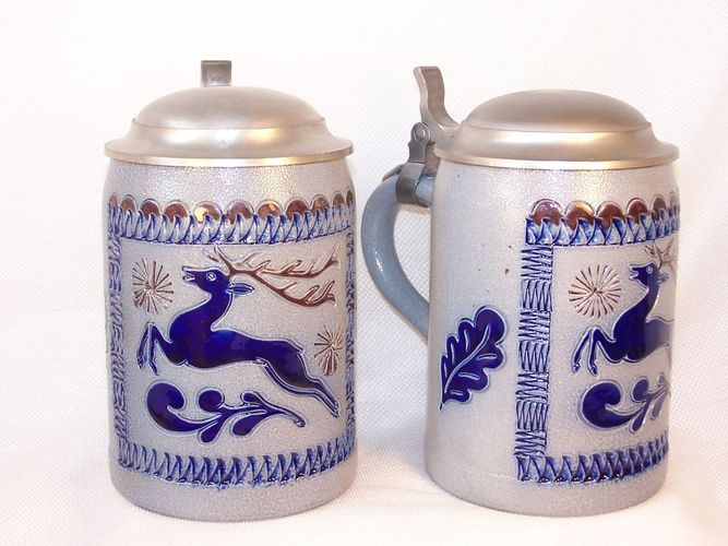 Angebot : FLIX Keramik Krug, H. ohne Deckel - 12,5 cm, Sgrafitto-Dekor, gemarkt - Flix , Salzglasur, Zinndeckel, TOP-Zustand.
