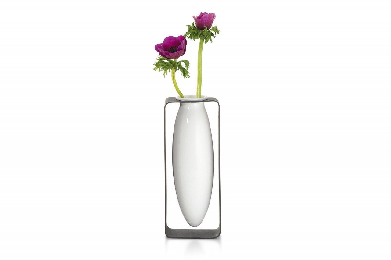 FLOAT Vase - Philippi Design Es gibt nichts, was die Vase FLOAT aus der Ruhe bringt – sie hängt frei schwebend im Metallrahmen und erhebt Blüten zugleich in neue Sphären. Zum Ausgießen oder Befüllen lässt sich der Keramikkorpus aushängen und strahlt auch mit wenigen Blumen. Ob ihr wohlgeformter Korp