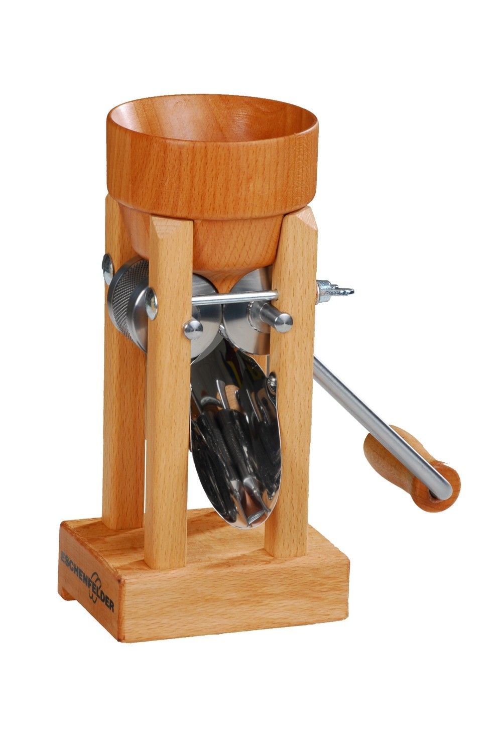 Lieferbar - Produktinformationen Flockenquetsche Tischmodell mit Holztrichter Buche, Eschenfelder Beste Ergebnisse durch hohe Qualität. Zwei nickelfreie Edelstahlwalzen verwandeln jede Getreideart (außer Mais) aber auch Ölsaaten und Gewürze für sie in frische leckere Flocken. Mit der Eschenfelder Fl
