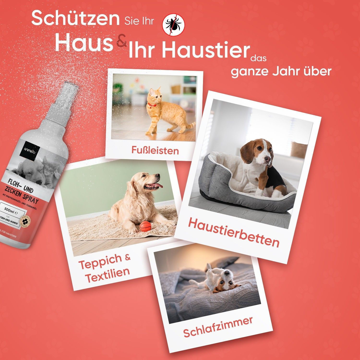 Floh & Zeckenschutz für Hunde & Katzen - 500ml Zeckenschutz mit Pfefferminz & Rizinus