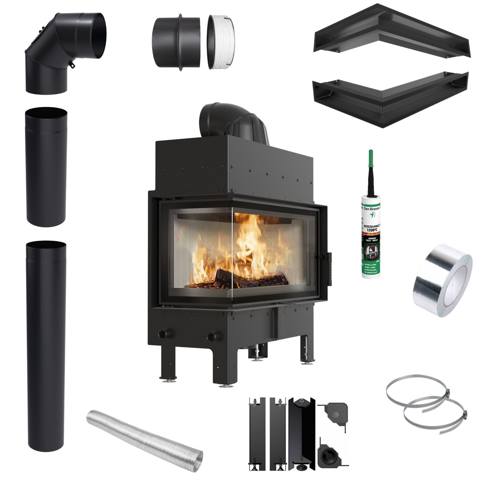 FLOKI L KRATKI Kamineinsatz Linke Ecke 12 kW Ø200 Montagesatz