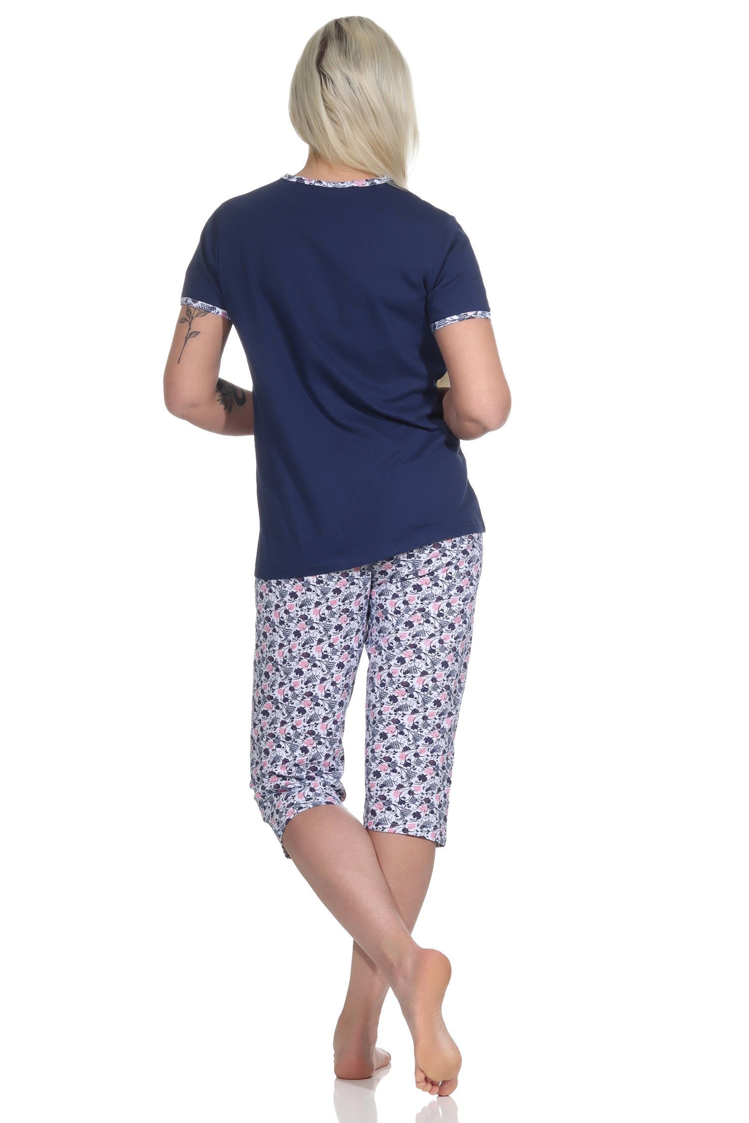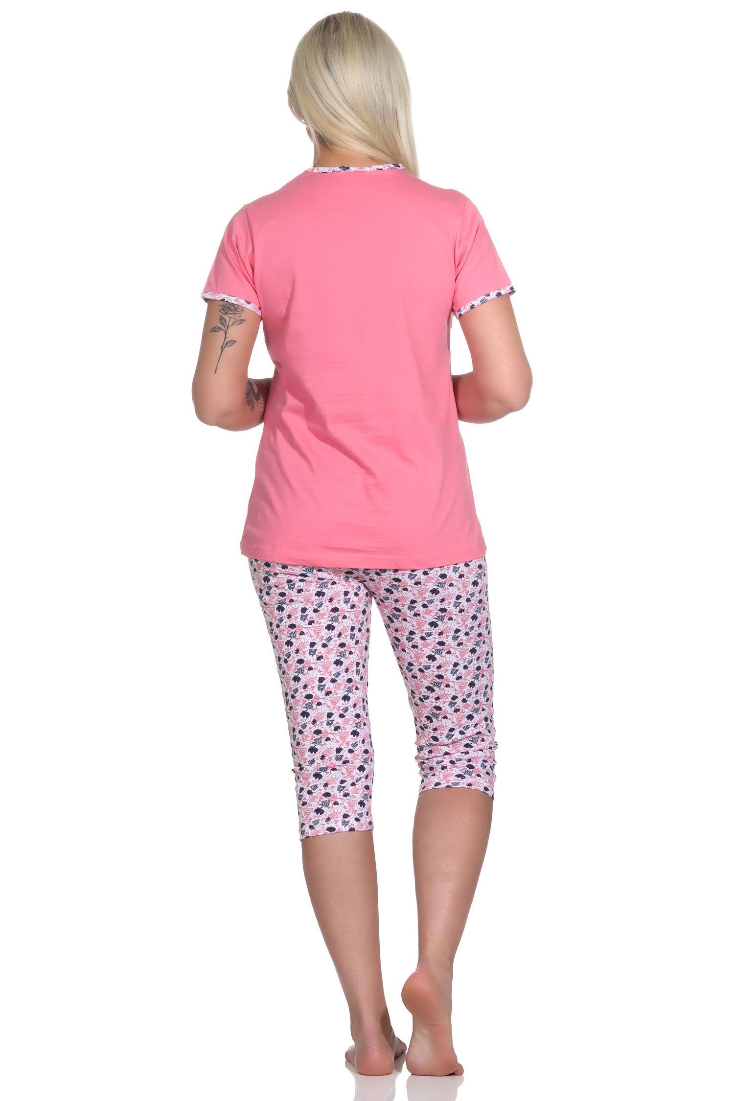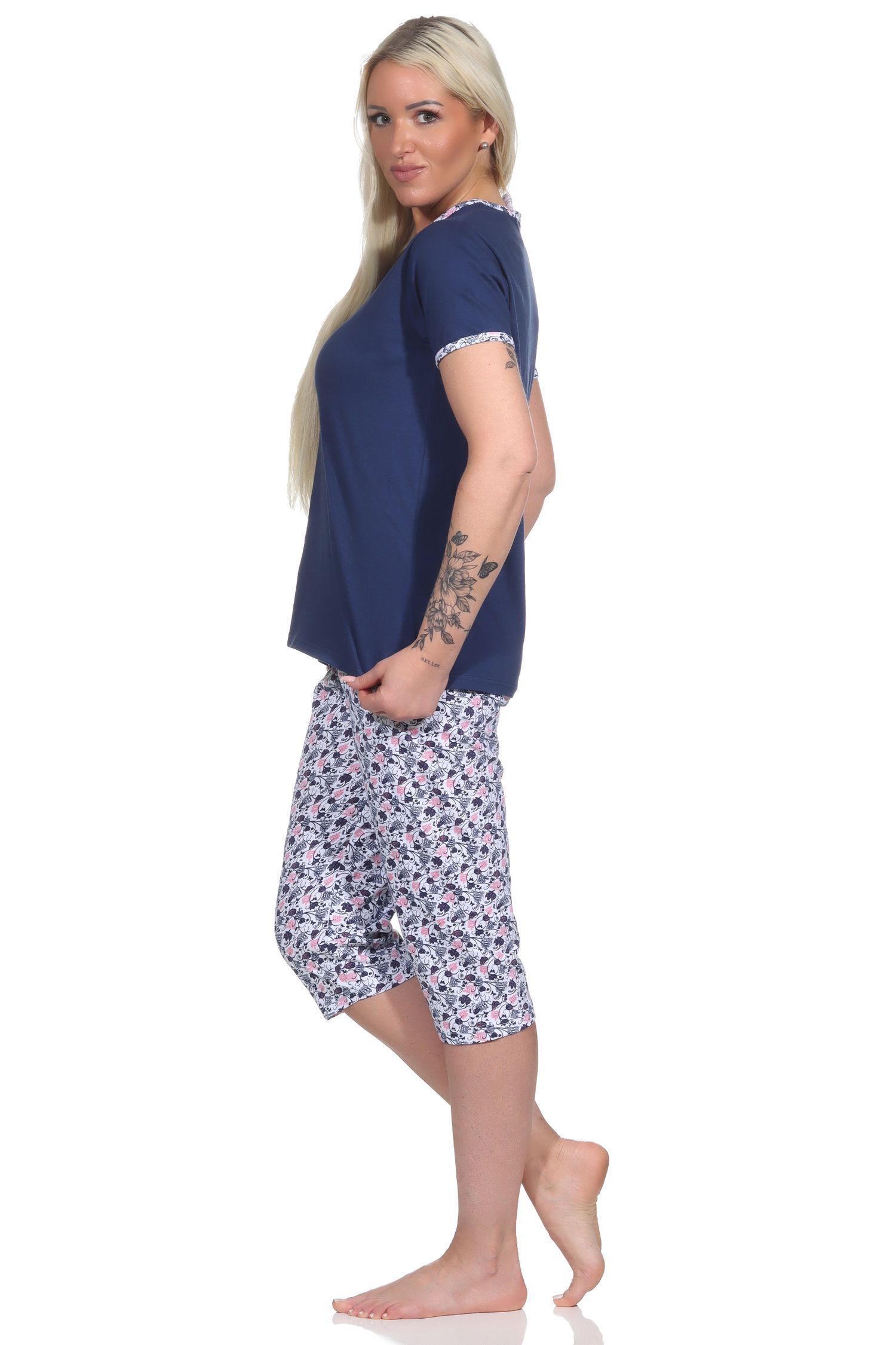Floraler Damen Capri Pyjama, kurzer Schlafanzug mit 3/4 Caprihose - 12320410152