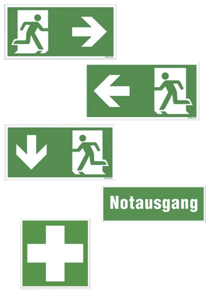 Notausgang Flucht-Rettungswegzeichen Schild ISO 7010 Größen: Symbole: 300 x 150 mm Textschild: 300 x 105 mm Erste Hilfe + : 150 x 150 mm Folie, selbstklebend Nach ISO 7010- aktuelle Norm Unser Service: ? Kostenlose Beratung ? Kauf vom Fachhandel ? Gratis Versand ? 30 Tage Rücknahme ? Sonderpreise ab