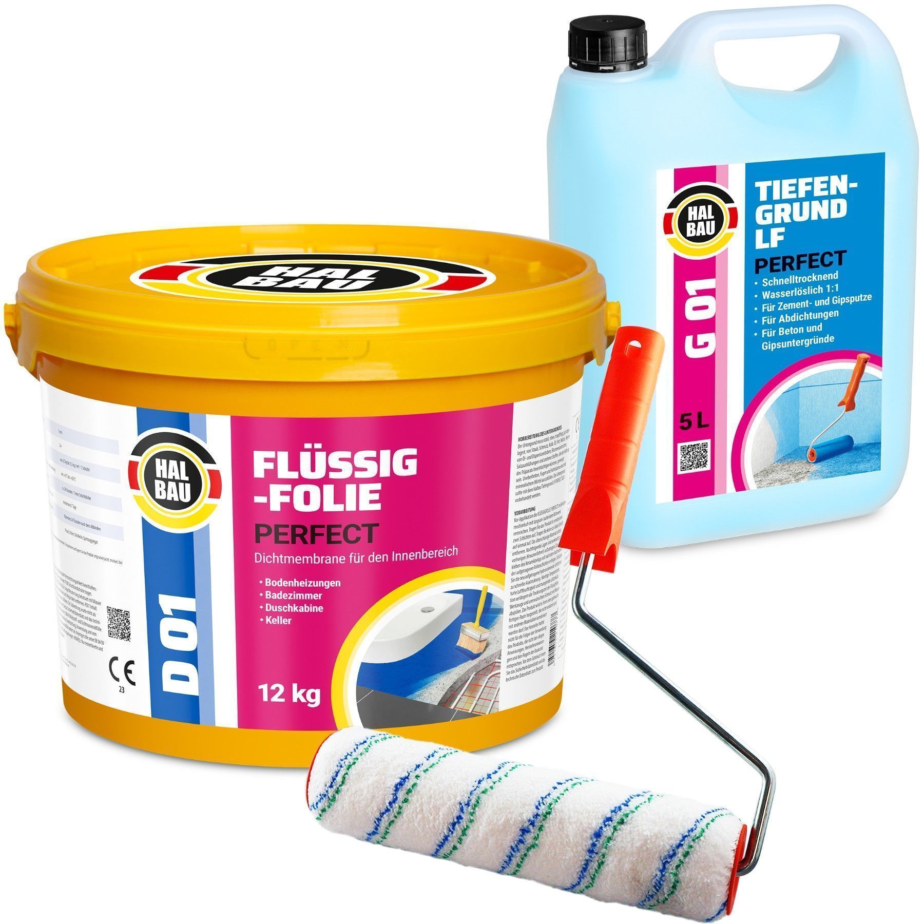 Flüssigfolie 12Kg Dichtfolie Tiefengrund 5L Dusche Bad Küche Farbroller 25cm H28