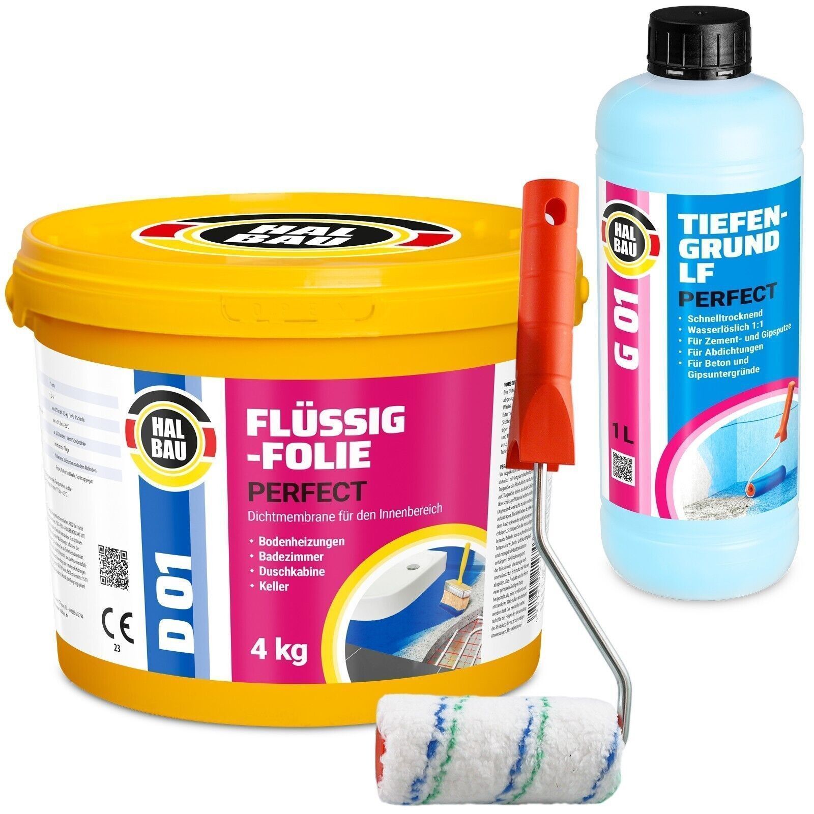 Flüssigfolie 4Kg Abdichtung Tiefengrund Dusche Bad Küche Farbroller 10cm H407