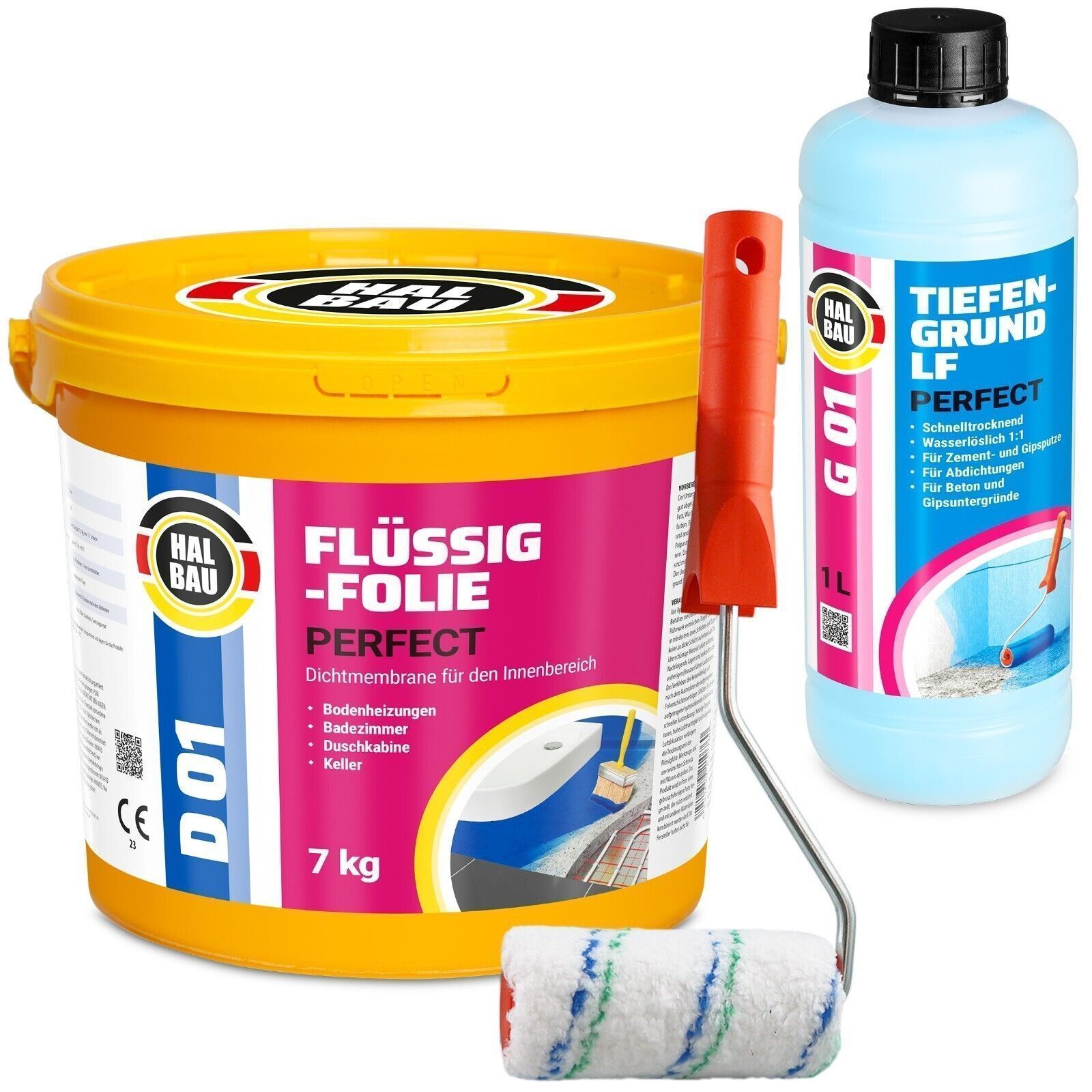 Flüssigfolie 7Kg Abdichtung Tiefengrund Dusche Bad Küche Farbroller 10cm H409