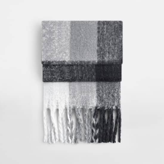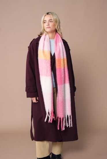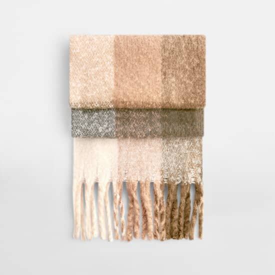Enthält 100 % GRS-zertifiziertes recyceltes Polyester, zertifiziert durch Control Union CU811033 Luxuriöses Soft-Touch-Material Kariertes Design Grobes, umlaufendes Design Oversized-Schnitt Quastenbesatz Abreißbares Klebeetikett nicht waschbar Bügeln erlaubt Produktart: Handschuhe und Schals Geschle