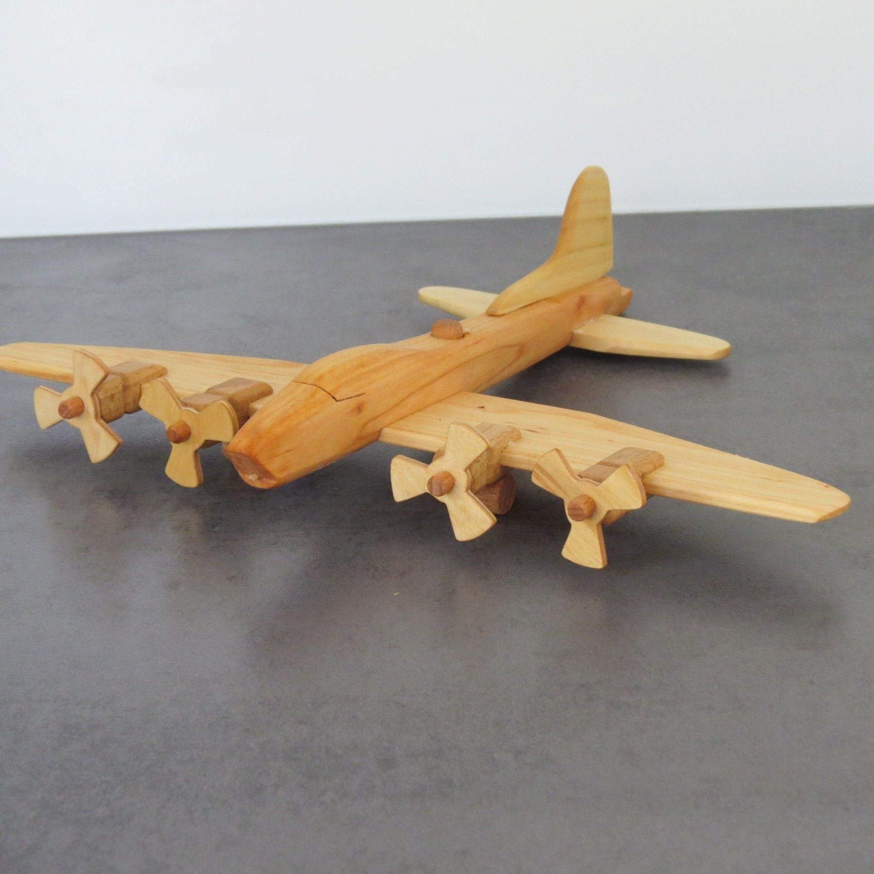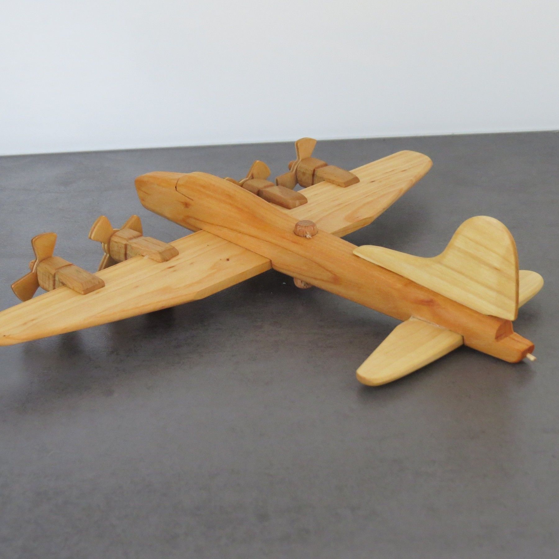 Ein wunderschöner, extrem realistischer, stabiler Oldtimer- Flieger aus Naturholz/ Massivholz echte Handarbeit!!! Flugzeug mit 4 beweglichen Propellern Länge ca. 24 cm, Breite ca. 30 cm, Höhe ca. 6 cm Achtung - Nicht für Kinder unter 3 Jahren geeignet, wegen Erstickungsgefahr durch Kleinteile. Informationen aufbewahren. Das ist ein Dekorationsartikel. Kein Spielzeug.