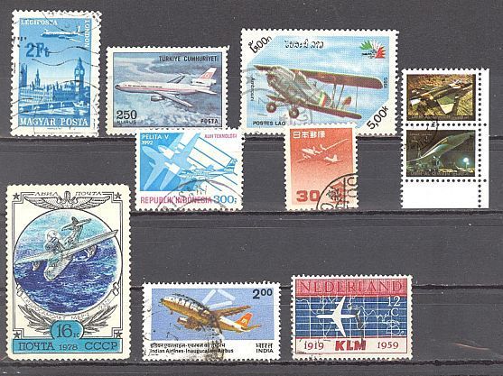 Flugzeuge, 10 Briefm.: Ungarn, Türkei, Laos, Indonesien, Japan, Indien, Niederl. u.a