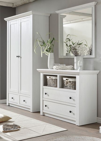 Flur Garderobe Garderoben-Set in weiß Pinie Landhaus Set mit Schrank Diele Hooge