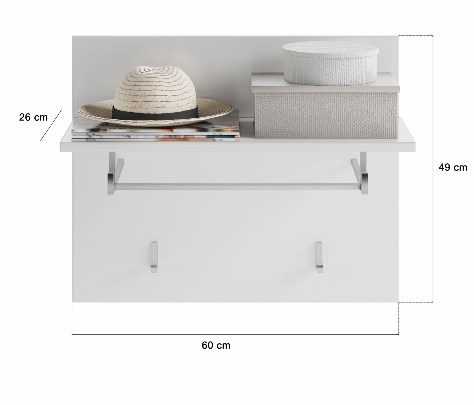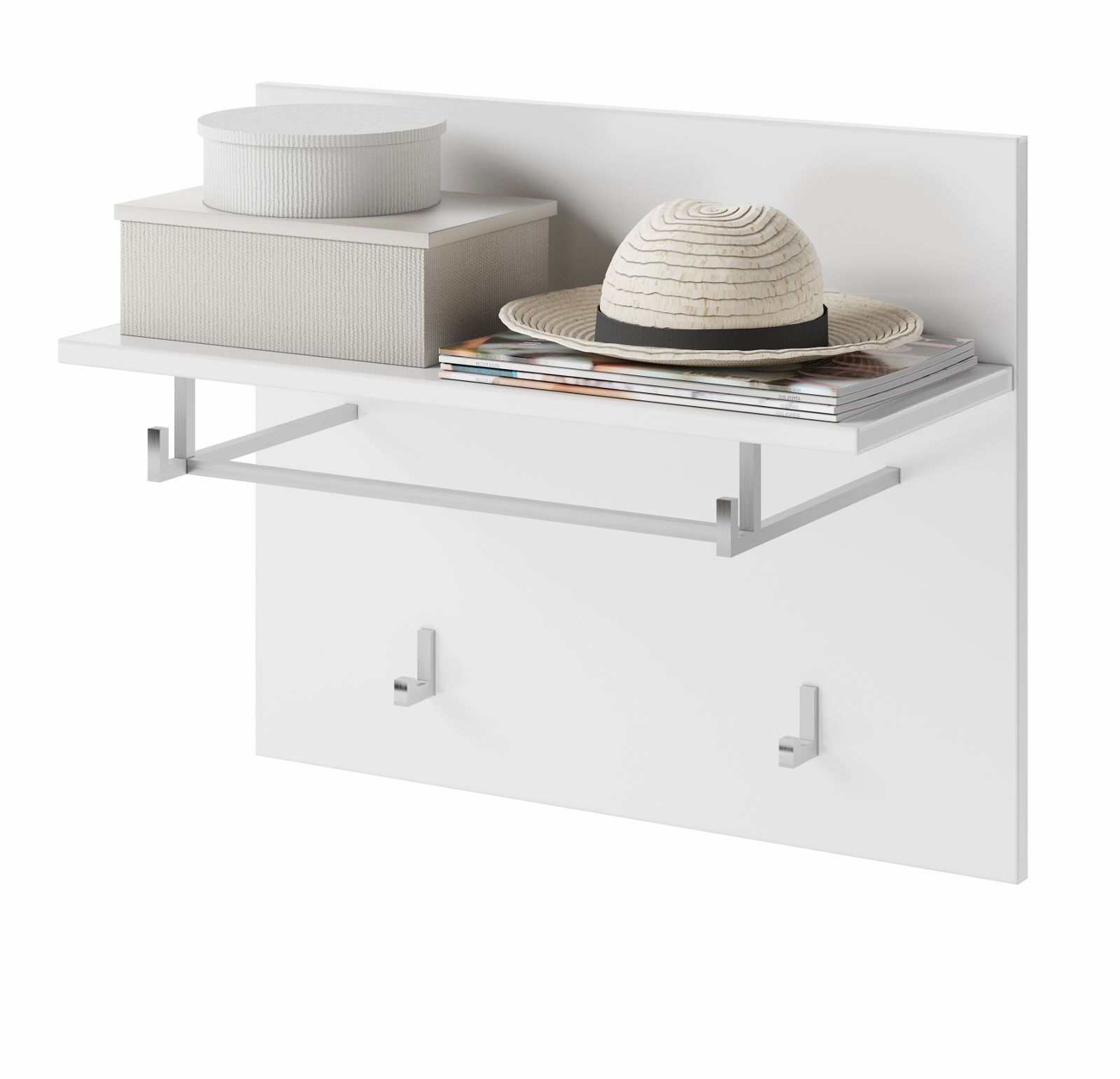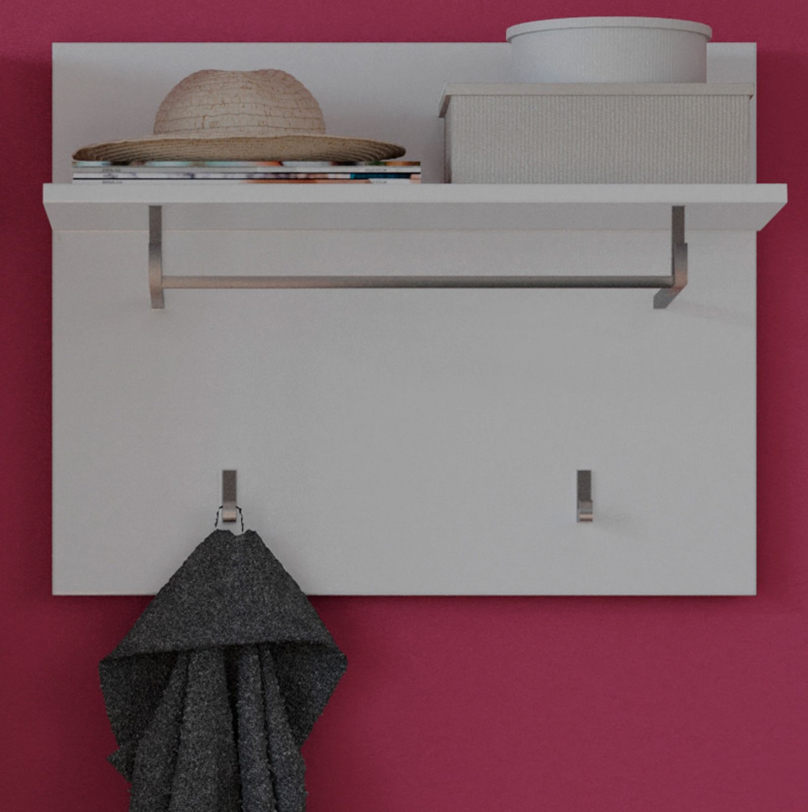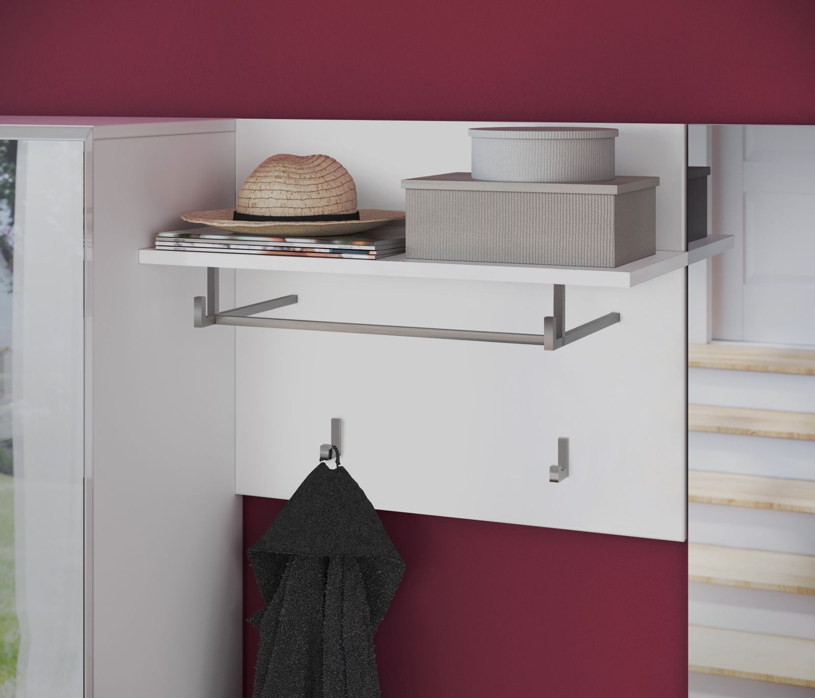 Flur Garderobe Paneel in weiß Hochglanz mit Kleiderstange Hutablage Haken Leon