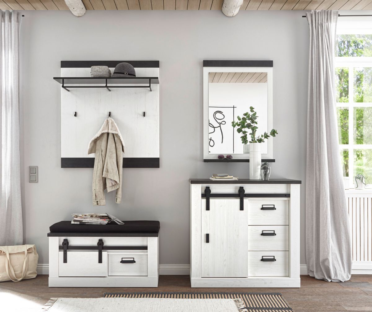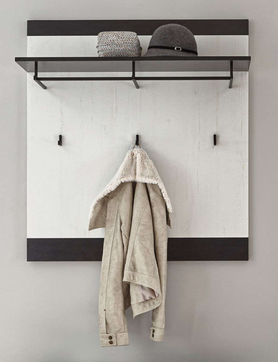 Flur Garderobe Paneel Wandgarderobe weiß Pinie schwarz Ablage 90 x 100 cm Stove