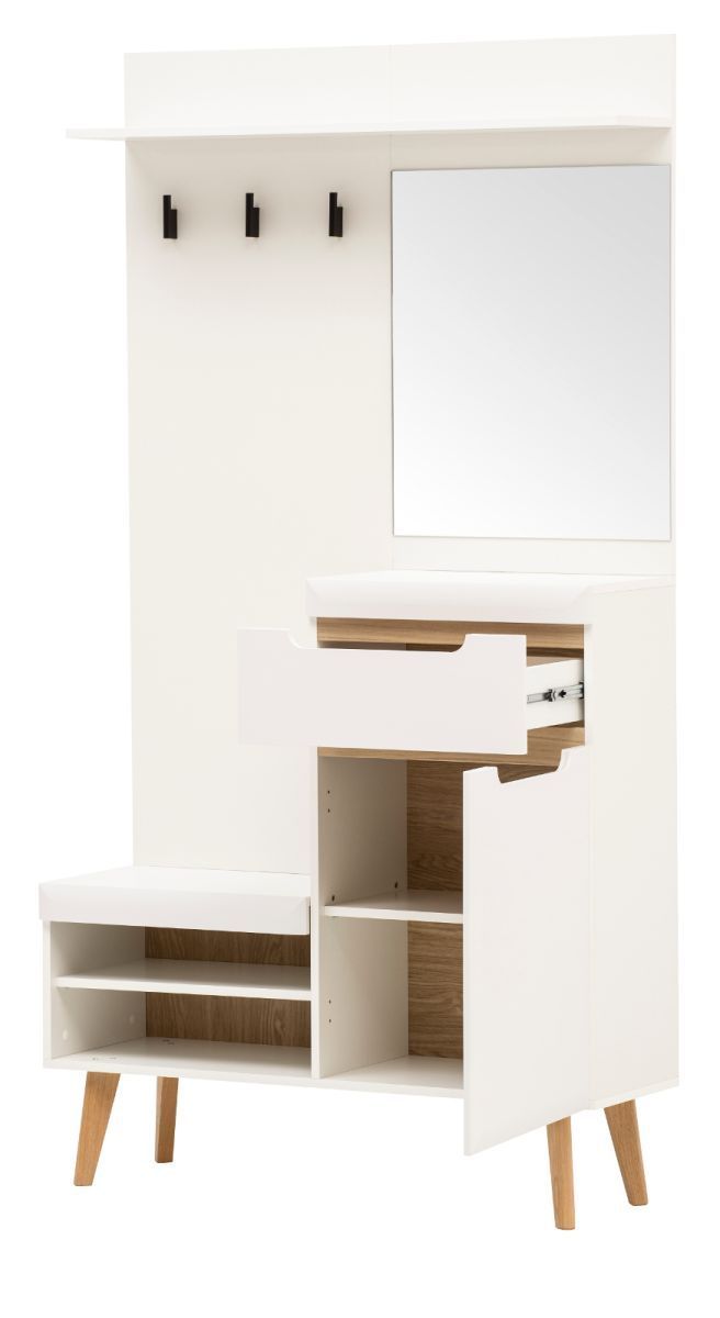 Flur Garderobenset kompakt Garderobe komplett Set in weiß matt 110 x 197 cm Isgard