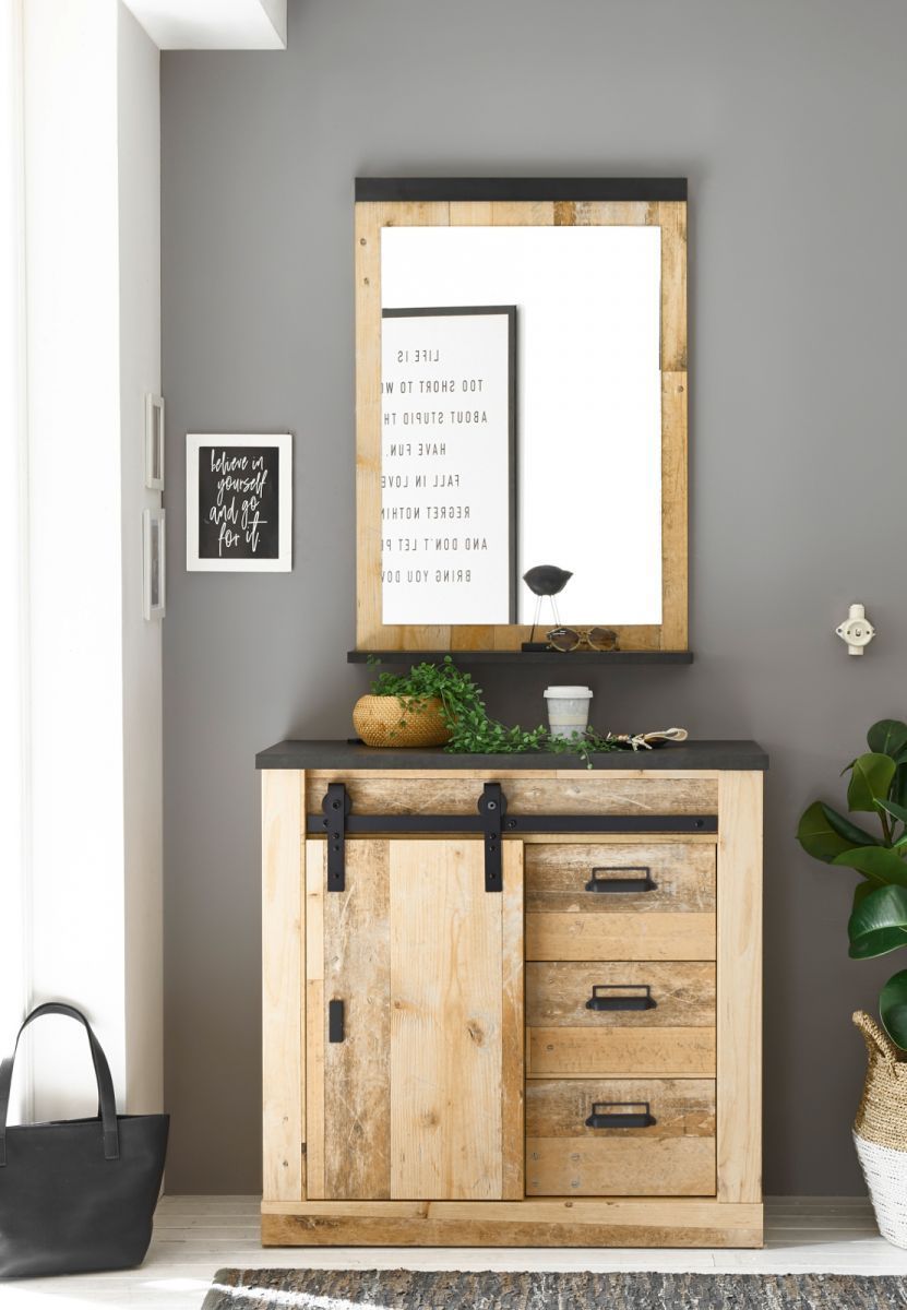 Flur Spiegel Wandspiegel Garderobenspiegel Used Wood anthrazit Garderobe Stove