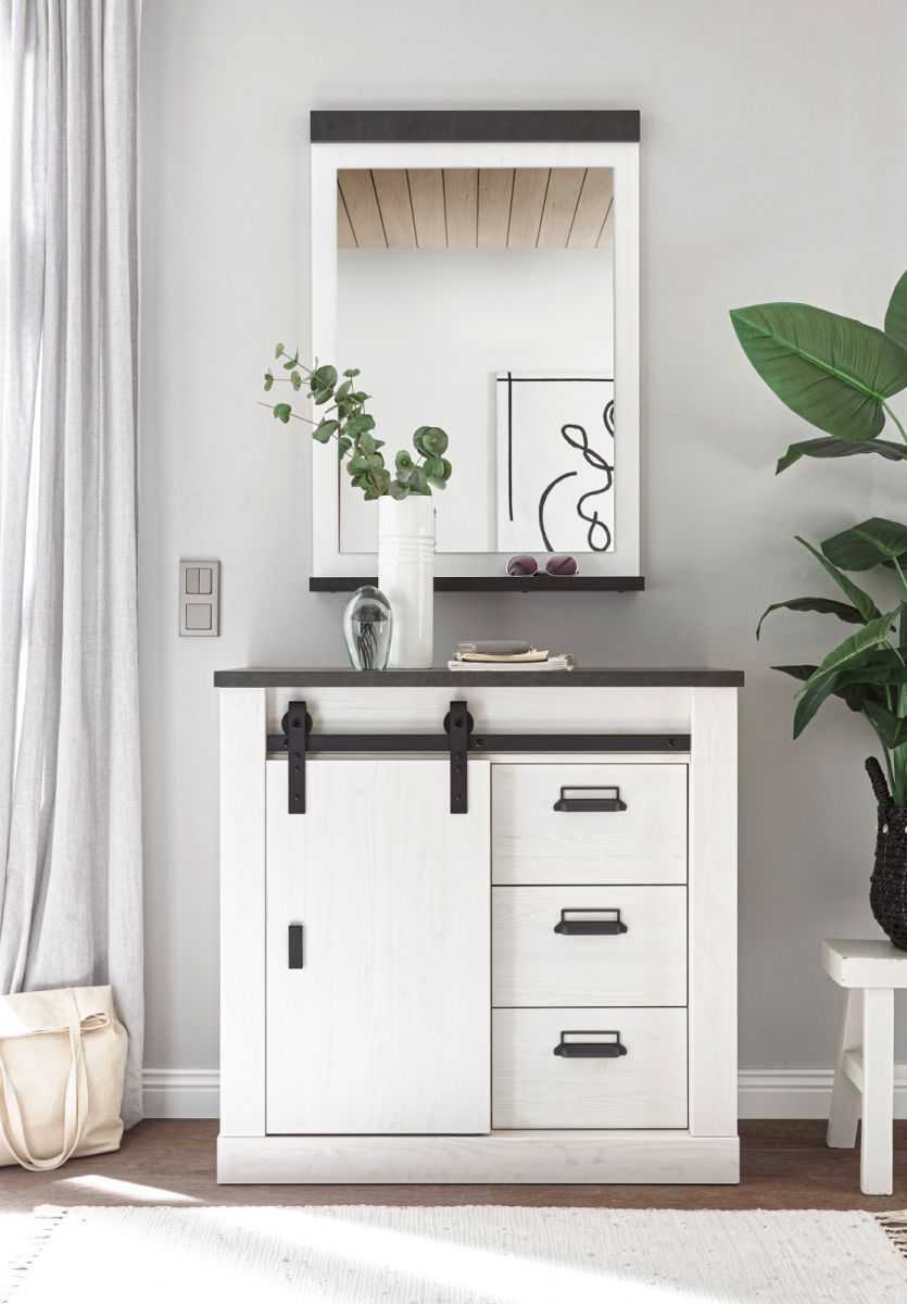 Flur Spiegel Wandspiegel Garderobenspiegel weiß Pinie schwarz Garderobe Stove