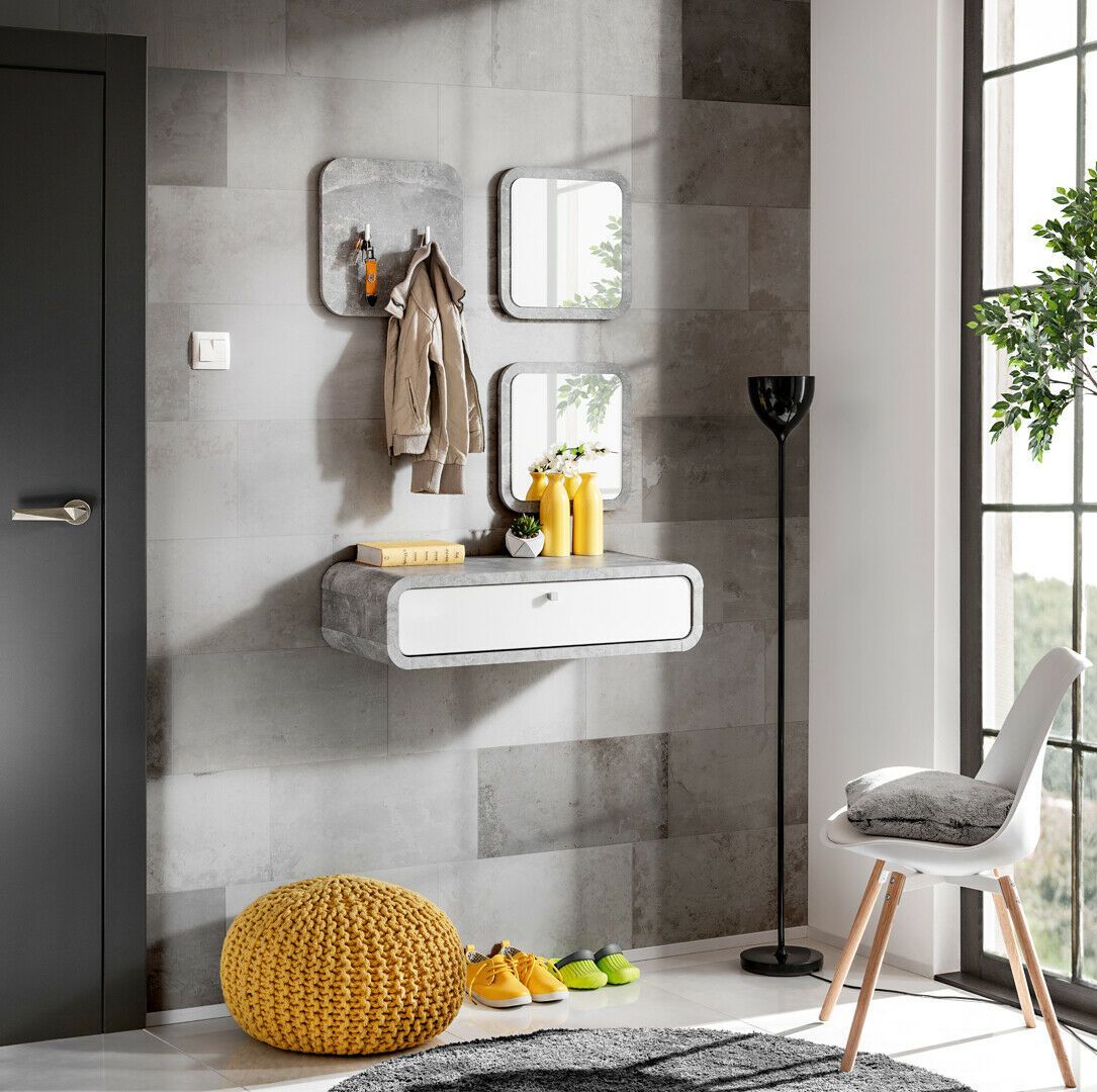 Flur Garderobe Wally II PVC Hochglanzfronten + 2x Spiegel Beschreibung Garderobe: im Set ist ein Wandpaneel mit zwei Haken, zwei Spiegel und ein Schrank mit einer PVC hochglanzfront Schublade. Inkl. zwei Spiegel. Inkl. PVC Hochglanzfronten. Schranz zur Selbstmontage. Sehr einfache Montage. Bauanleit