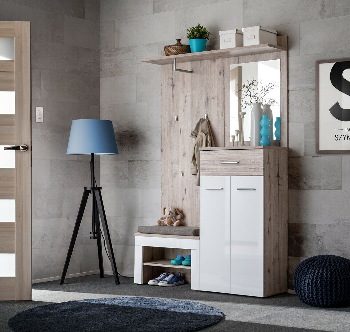 Flurgarderobe Garderoben Schuhschrank Wandpaneel Gustavo II Spiegel Hochglanz