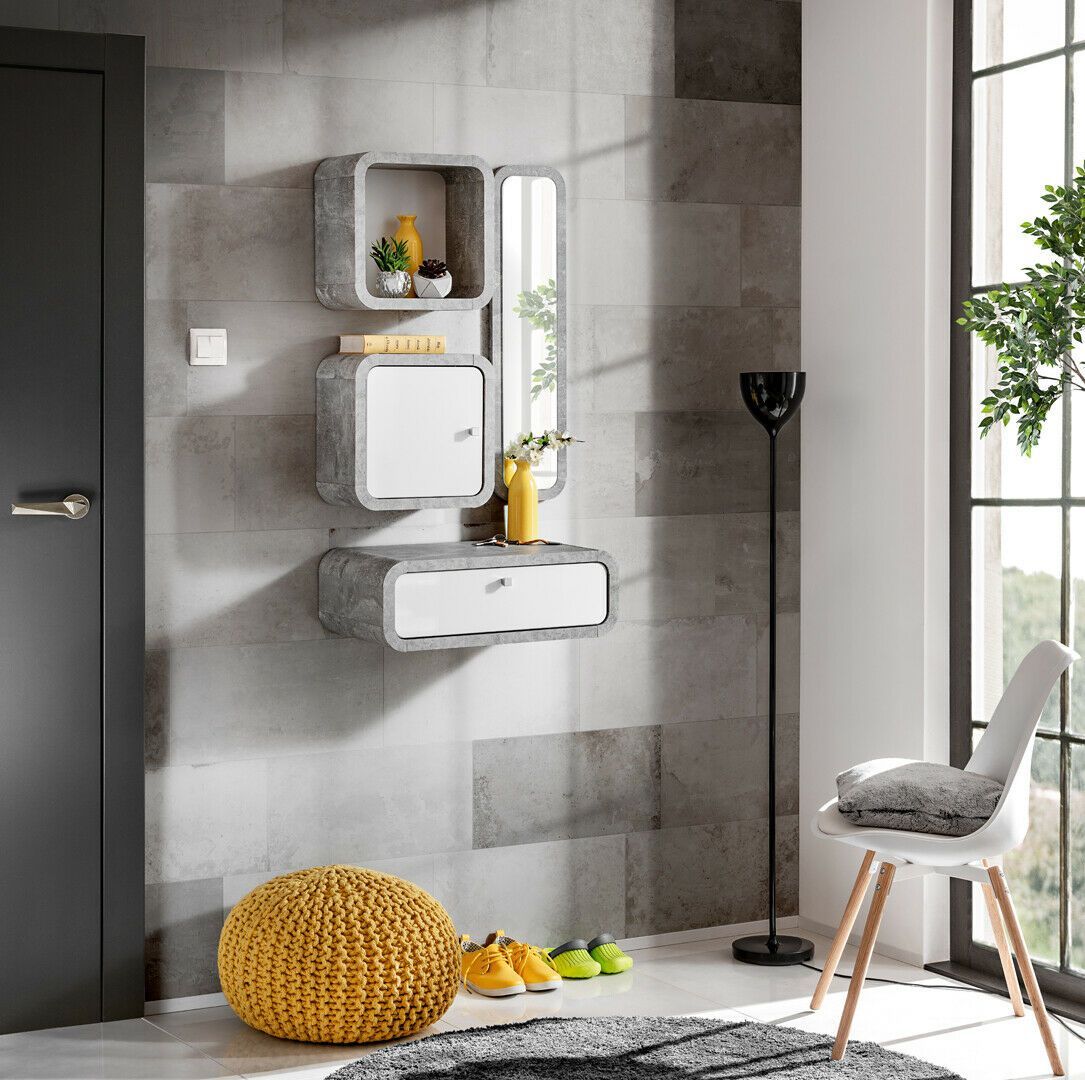 Flur Garderobe Wally III PVC Hochglanzfronten + Spiegel Beschreibung Garderobe: im Set ist ein Wandregal, ein Spiegel und ein Schrank mit einer PVC hochglanzfront Schublade und ein Schrank mit einer PVC Hochglanztür. Inkl. Spiegel. Inkl. PVC Hochglanzfronten. Schranz zur Selbstmontage. Sehr einfache