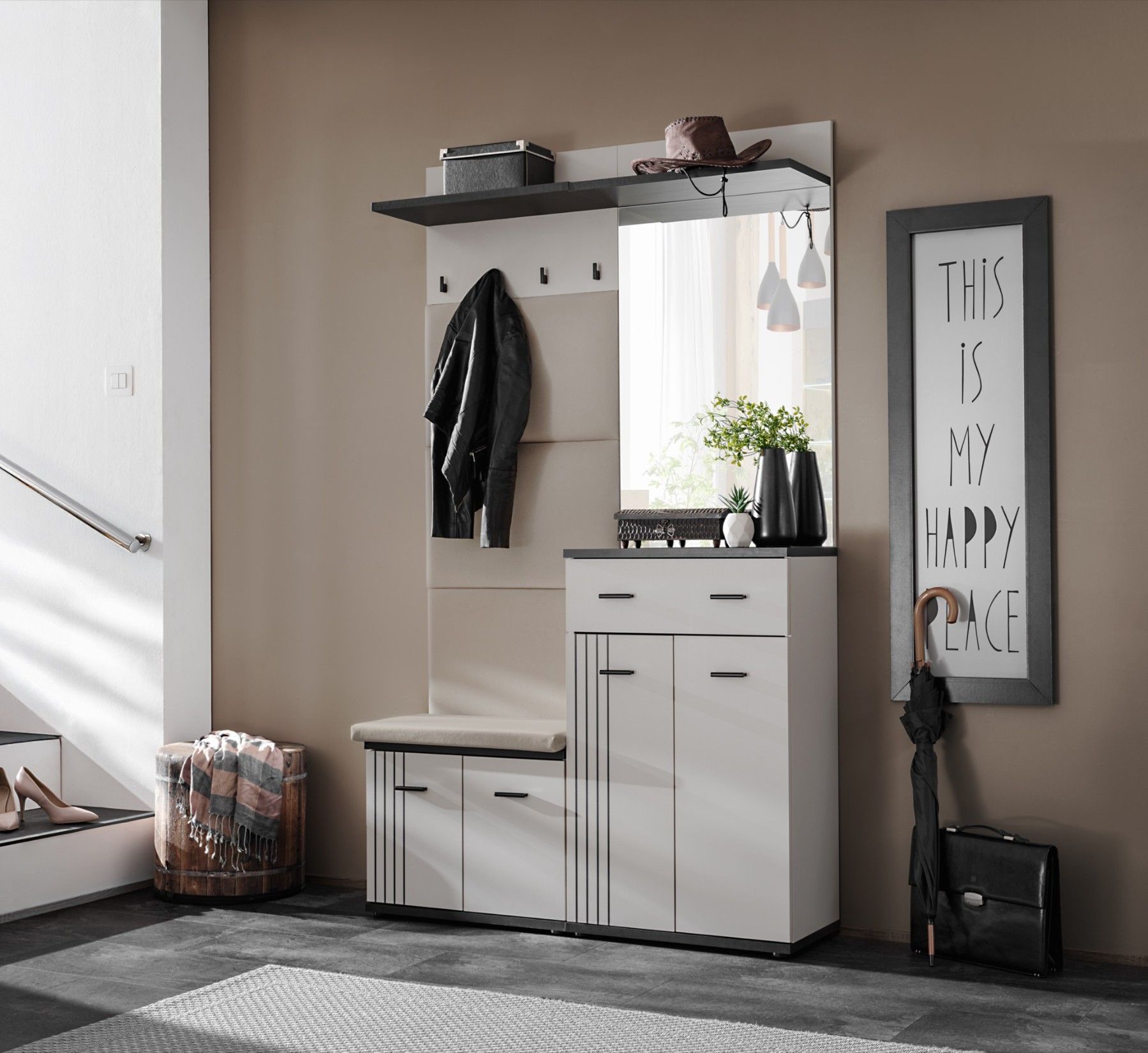 Flurgarderobe Schuhschrank Wandpaneel HUGO VI mit Sitzbank und Spiegel