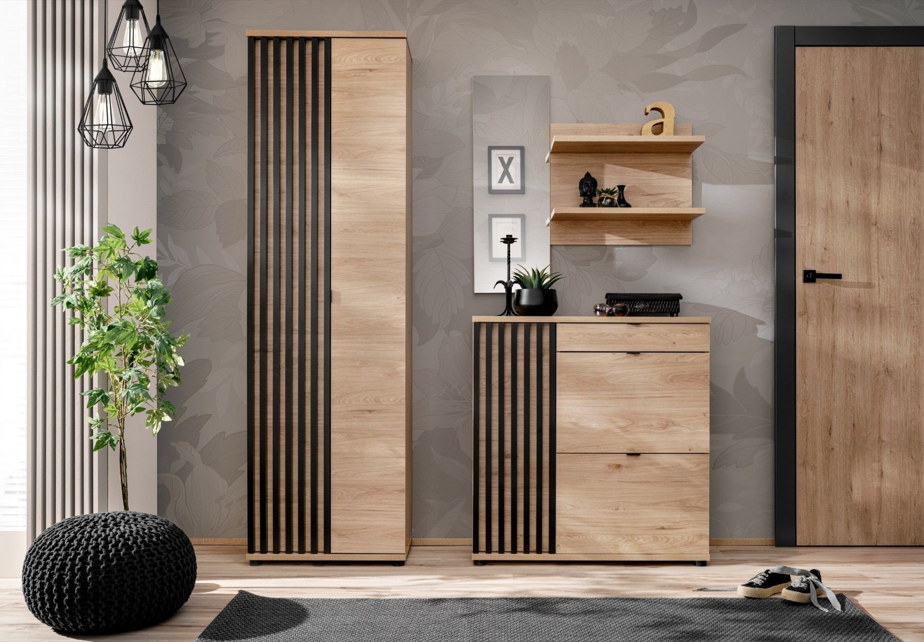 Flurgarderobe Schuhschrank Wandpaneel PEDRO III mit Lamellen und Spiegel
