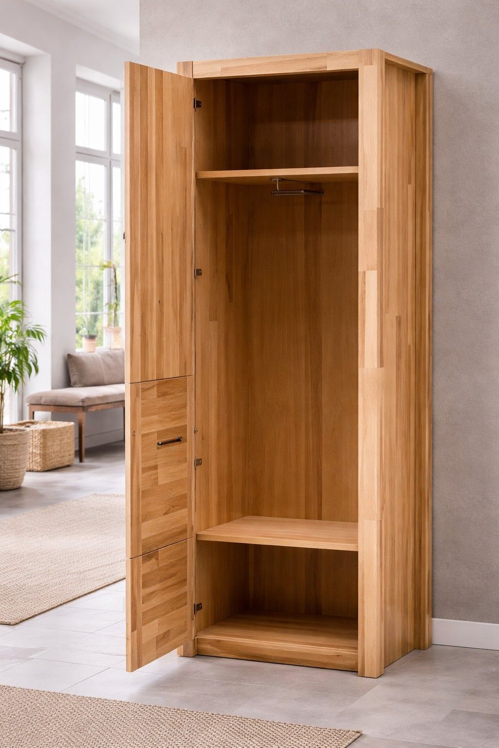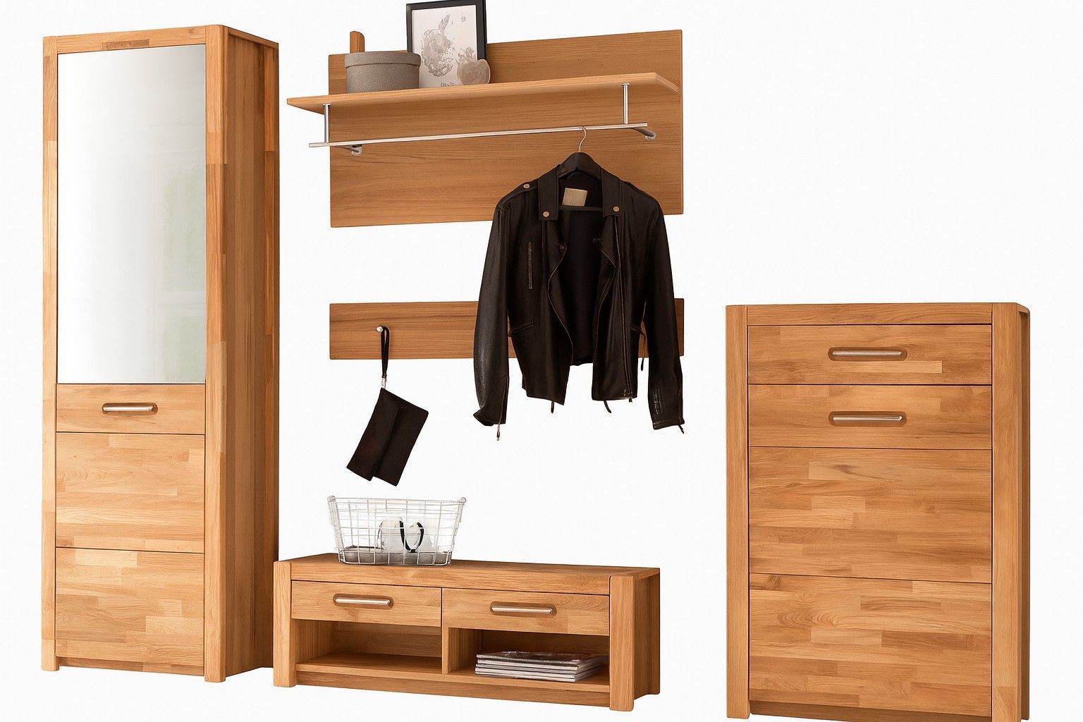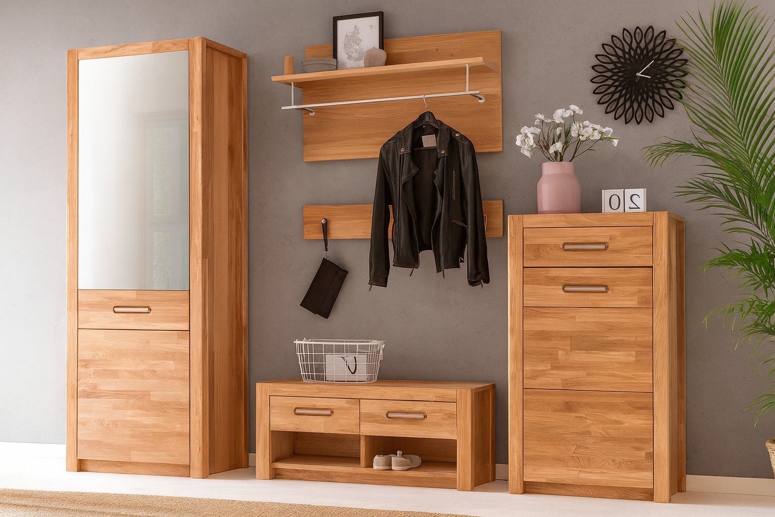 Flurgarderobe Wildeiche Garderobenset Spiegelschrank Wandpaneel #4055
