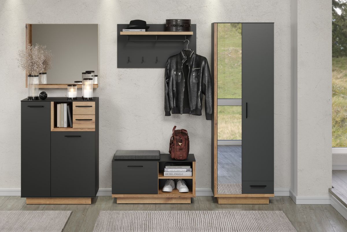 trendteam Flurkommode Schuhschrank in grau Eiche Flur Kommode mit Soft-Close 80 x 113 cm Synnax
