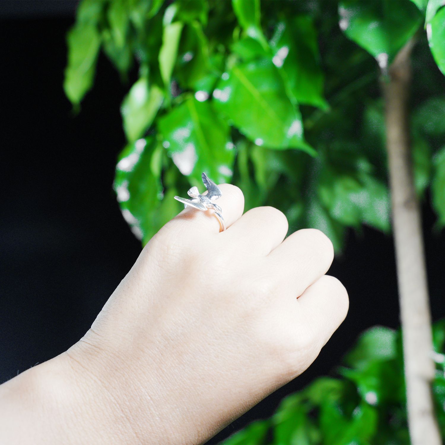 Flying Bird Ring, Minimalist Nature Jewelry, Freedom Animal Gift for Her