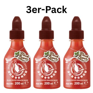 • 3er-Pack Flying Goose Sriracha Chilisauce Schwarzer Pfeffer 200ml