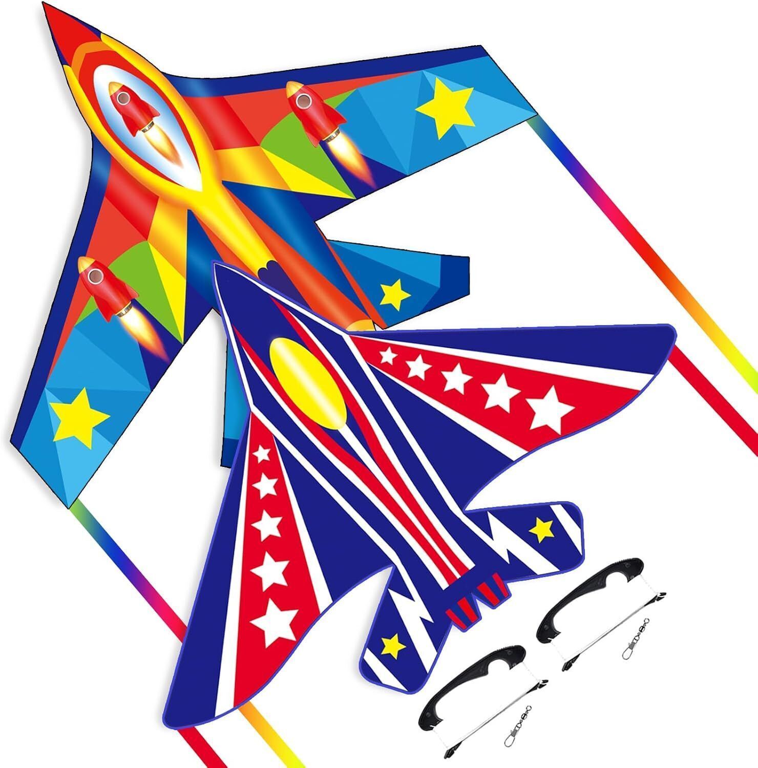 Flying Hoofer 2er Pack Regenbogen Fighter Flugzeugdrachen fér Kinder &Erwachsene