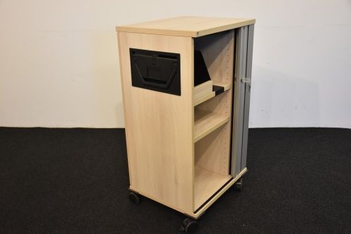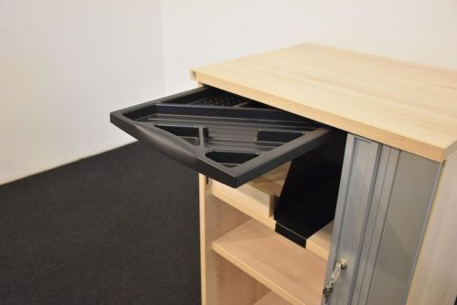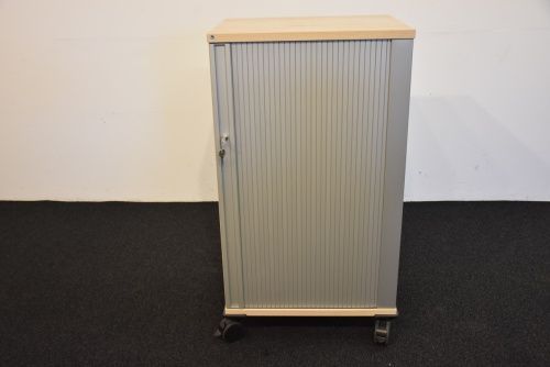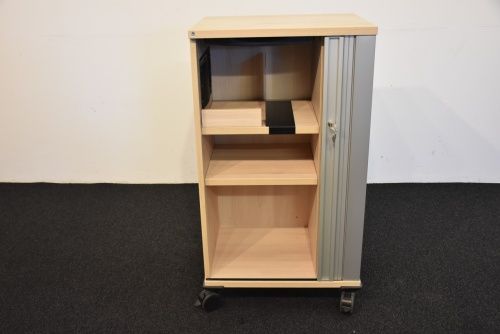 fm büromöbel, Rollcontainer, hoch, Deckplatte Ahorn, Front silber, gebraucht