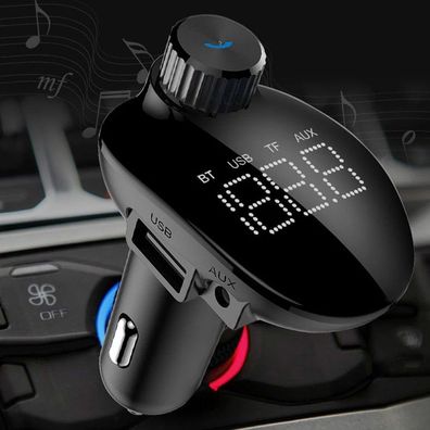 Bluetooth 5.0 U-Disk/AUX/FM Transmitter Car Kit with Type-C & Dual USB Charger