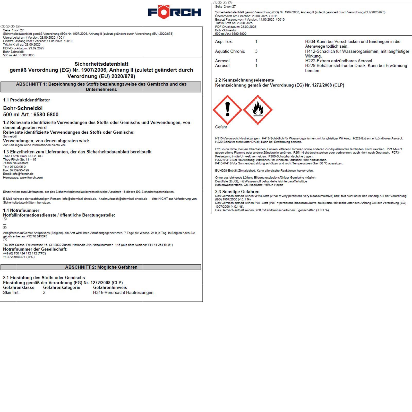 FOERCH BOHR-SCHNEIDOEL 0.5 LTR Sprühöl zum Bohren Drehen Fräsen Gewinde