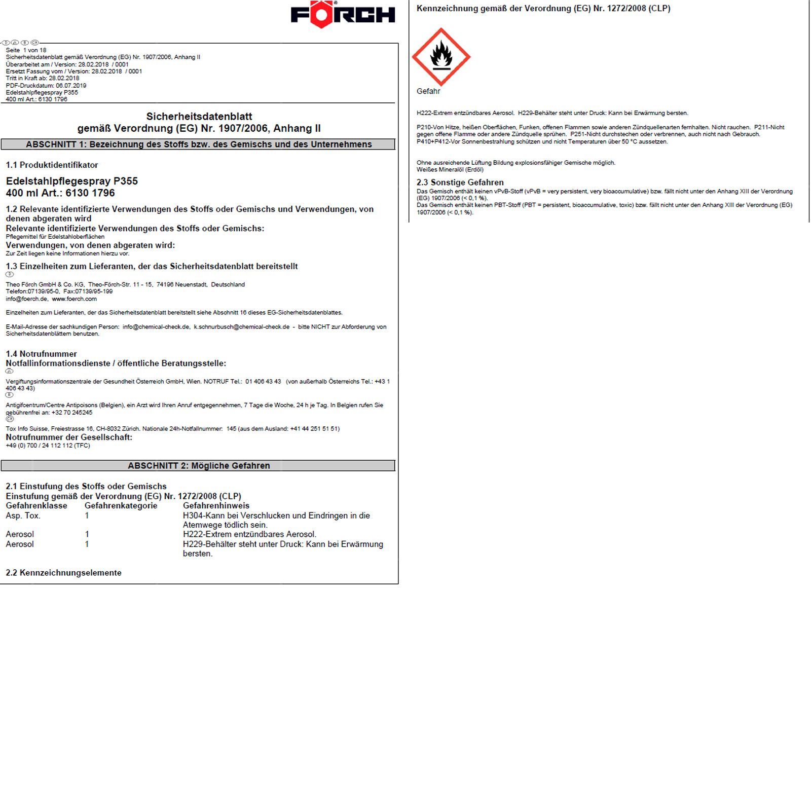 FÖRCH Edelstahlpflegespray P355 0.4 LTR
