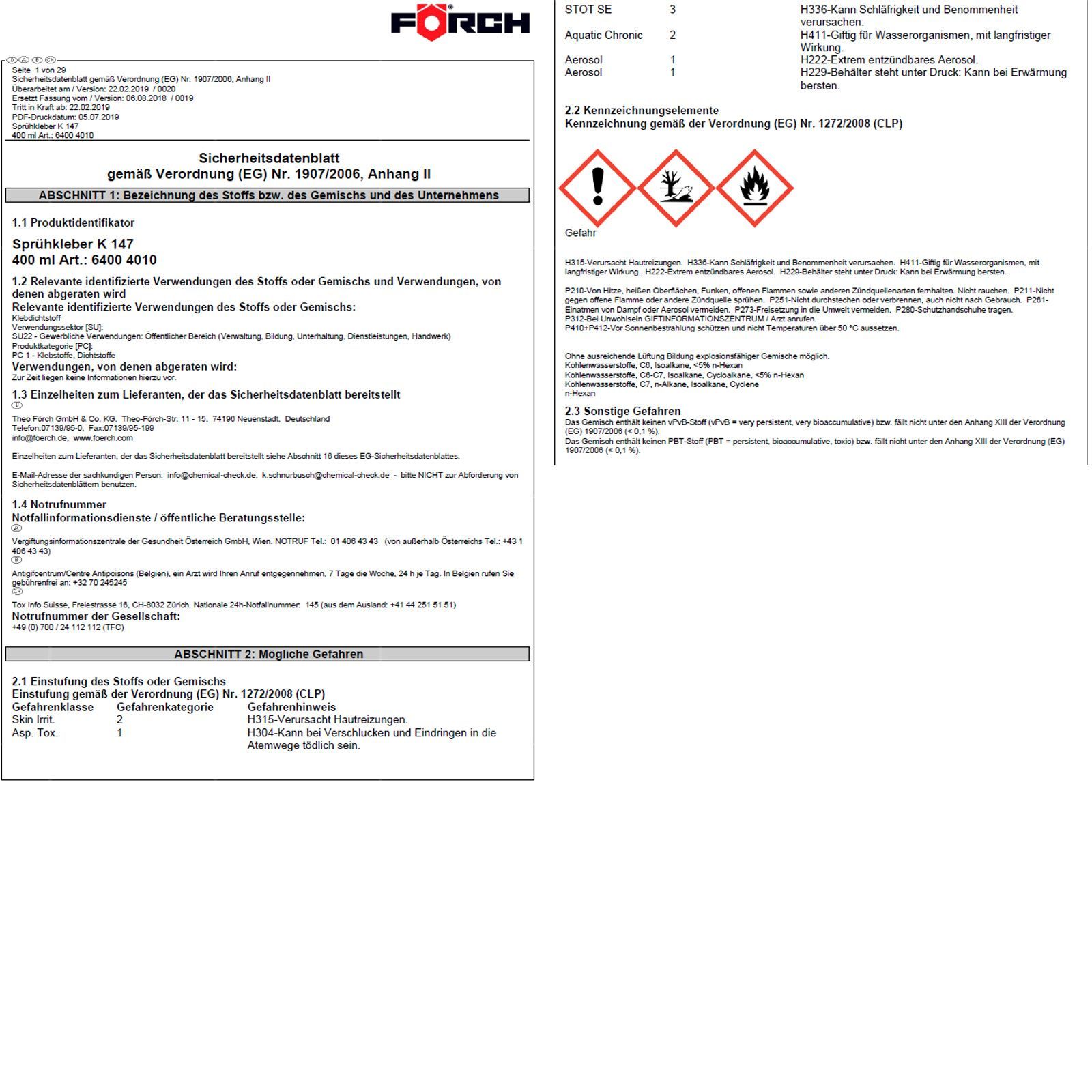 FÖRCH K147 Srühkleber 0.4 LTR Kraftkleber Kontaktkleber Alleskleber Styropor