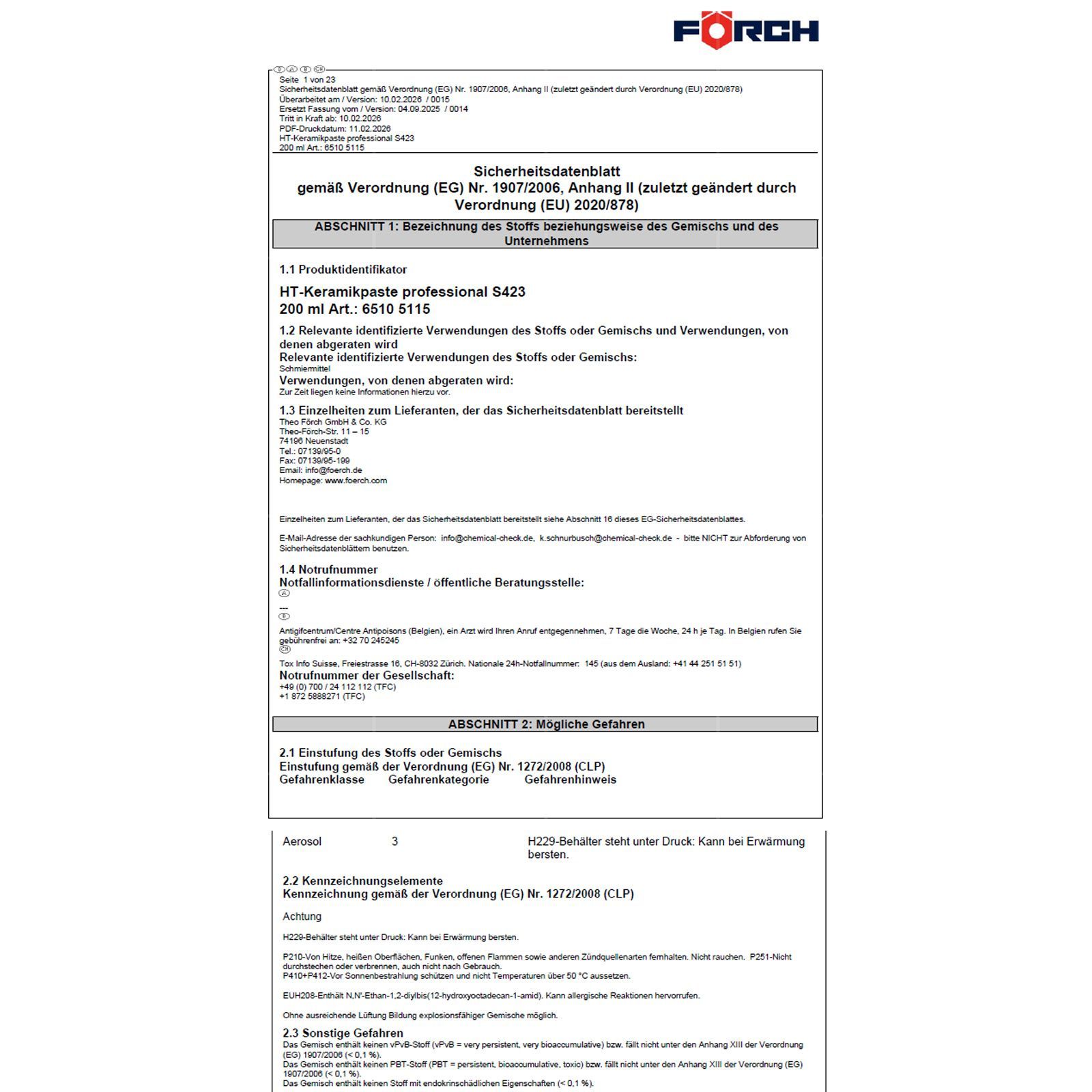 FOERCH S423 HT-KERAMIKPASTE Professional 0.2 LTR Radnabe Bremse Montage