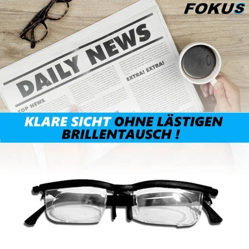 FOKUS individuell einstellbare Brille -6 + 3 Dioptrien Lesebrille Ad Lens Glass