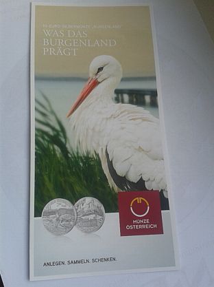 Folder 10 euro 2015 Silber Österreich Burgenland Storch