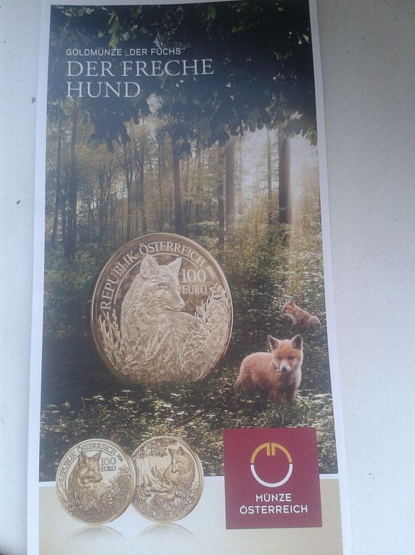 Folder 100 euro 2016 Gold Österreich Der Fuchs Der freche Hund