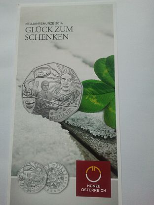Folder 5 euro 2014 Österreich Neujahrsmünze