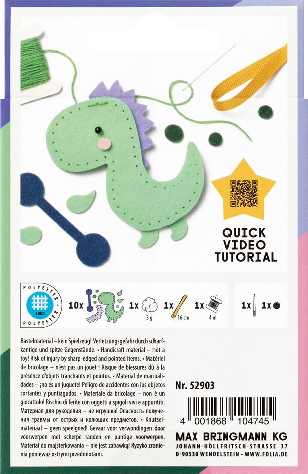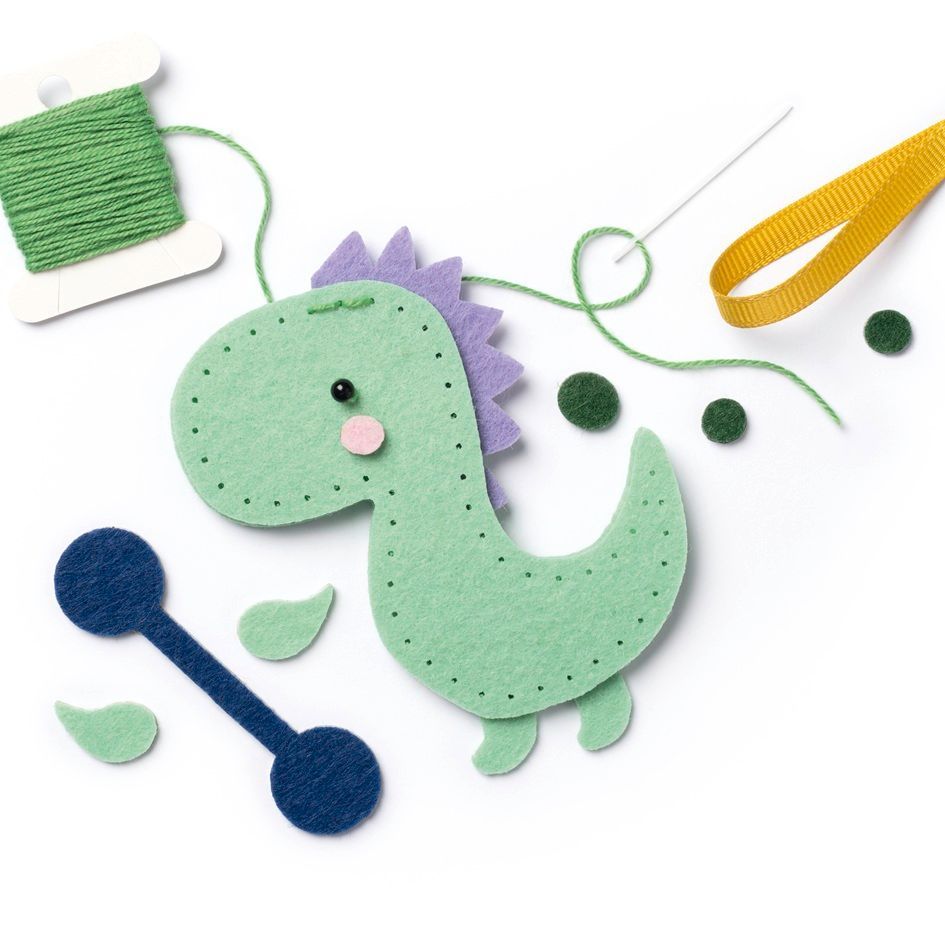Folia folia 52903 - Filz Nähset für Kinder-Mini Filzinie, Anhänger Dinosaurier, 12 teilig