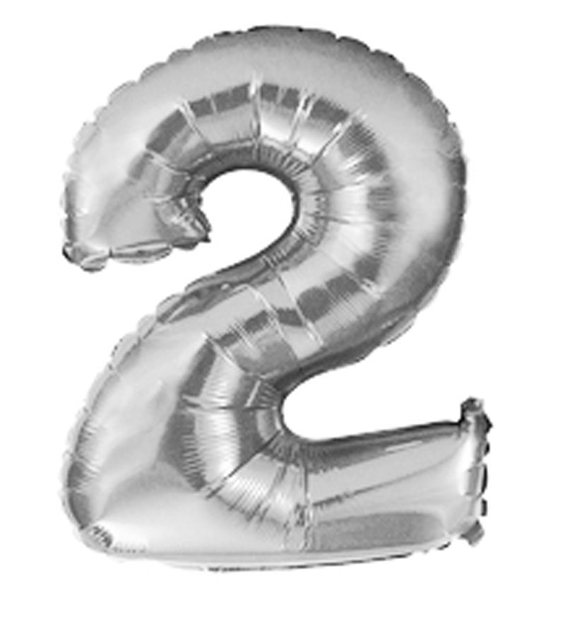 Folienballon Zahl 2 Nummer Luftballon Kindergeburtstag Geburtstag Silber 92x60